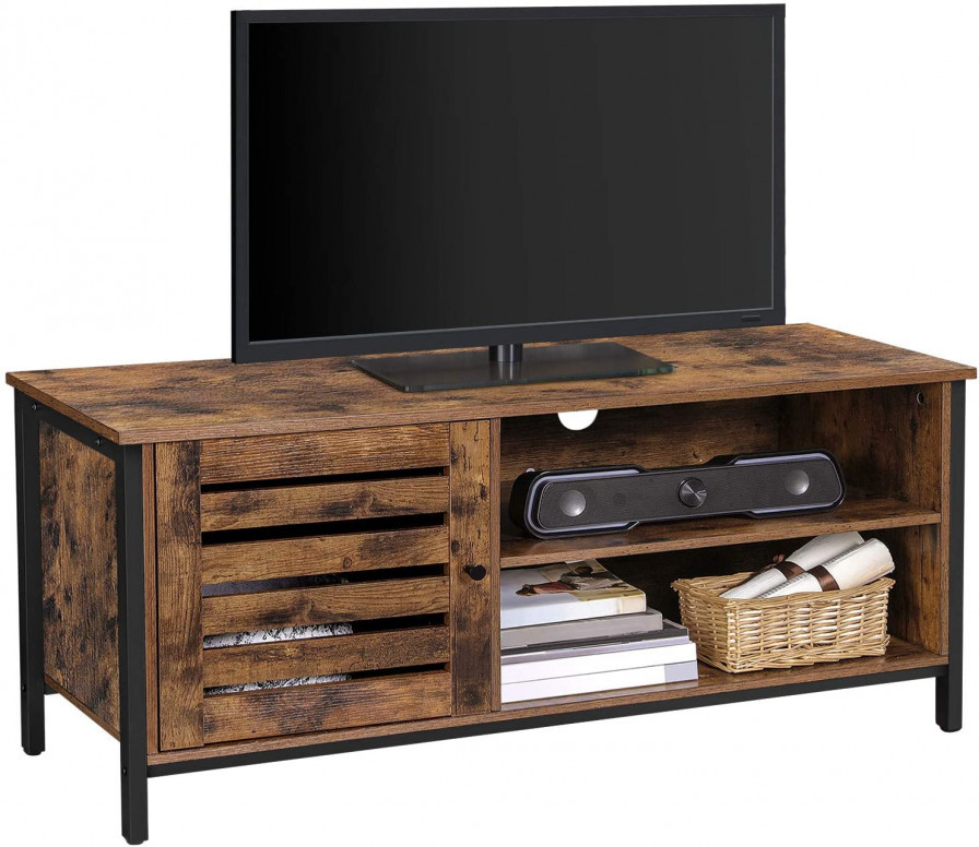 Comoda Vasagle este realizată din plăci PAL de culoare maro rustic și oțel, având dimensiunile 110 x 40 x 50 cm (L x l x H) și o greutate de 19,8 kg. Aceasta are o capacitate maximă de încărcare statică de 30 kg pentru suprafața superioară, 15 kg pentru compartimentul închis și 10 kg pentru fiecare raft deschis. Pachetul include o masă TV, un kit de asamblare și instrucțiuni în mai multe limbi.