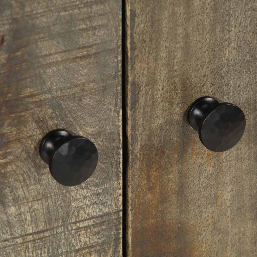 Dulapul pentru chiuveta de baie, realizat din lemn masiv de mango cu finisaj gri deschis, aduce un plus de eleganță și organizare în baia dumneavoastră. Dimensiunile sale de 62 x 33 x 58 cm oferă un spațiu amplu pentru depozitarea articolelor esențiale de baie, cum ar fi săpunurile și șampoanele. Designul său compact permite utilizarea optimă a spațiului sub chiuvetă, iar modelul sculptat manual conferă un aspect unic. Mânerele practice asigură o utilizare confortabilă. Fiecare piesă este unică, cu variații de culoare și granulatie. Avertisment: pentru siguranță, se recomandă fixarea de perete.