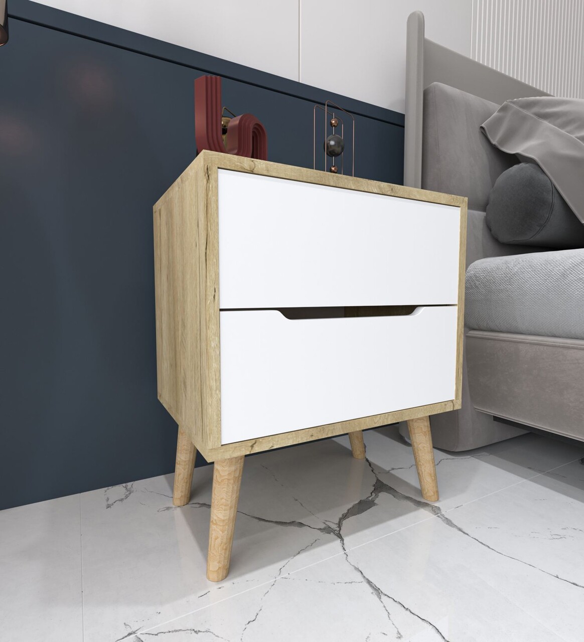 Noptiera Hanah Home Flora 50x60x44 cm PAL Stejar Safir / Alb