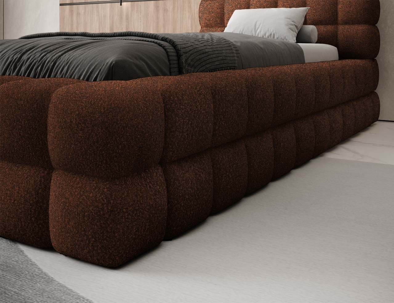 Patul Dizzle 90x200 cm Jaffray 30 este o piesă de mobilier modernă, elegantă și practică, ce asigură confortul necesar pentru un somn odihnitor. Echipat cu umplutură de spumă T2130 de înaltă calitate, oferă suport optim, iar picioarele solide din plastic rezistent asigură stabilitate. Lada de depozitare pentru lenjerie, spațioasă și ușor accesibilă, contribuie la menținerea ordinii în dormitor. Designul său modern se integrează perfect atât în interioare minimaliste, cât și în cele decorative, devenind un element central al camerei. Produsul este personalizabil în ceea ce privește culoarea și materialul.