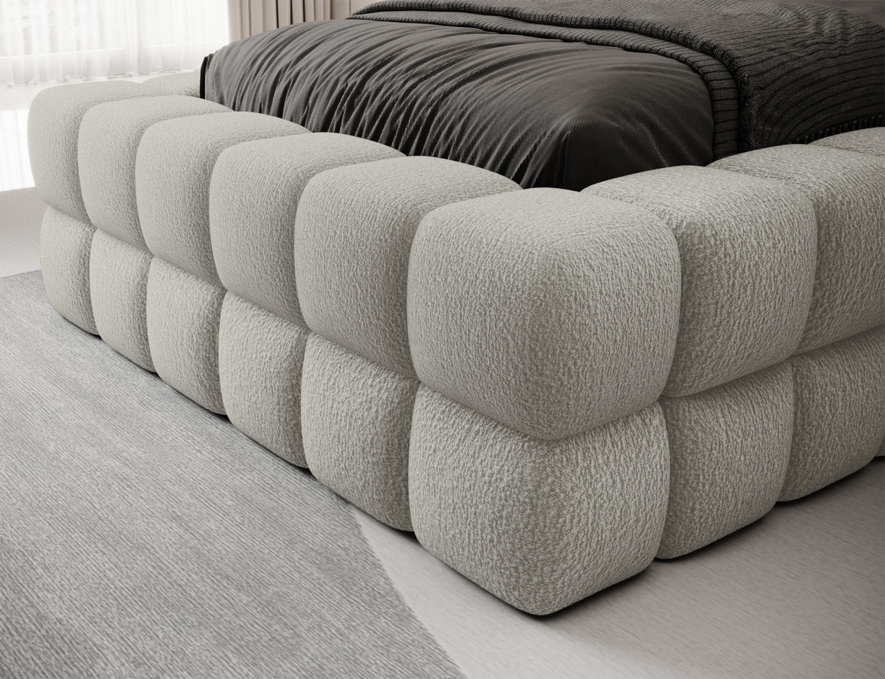 Patul Dizzle 90x200 cm Royal 20 este o piesă de mobilier modernă, ce combină confortul optim cu soluții practice. Echipat cu umplutură din spumă T2130, oferă suport excelent pentru un somn odihnitor. Picioarele solide, de culoare neagră, realizate din plastic rezistent, asigură stabilitate și durabilitate. Un avantaj important este lada de depozitare pentru lenjerie, care contribuie la menținerea ordinii în dormitor. Stilul său modern se potrivește atât interiorului minimalist, cât și celor decorative, devenind un element central al camerei. Produsul este personalizabil, iar instrucțiunile de montaj sunt incluse.