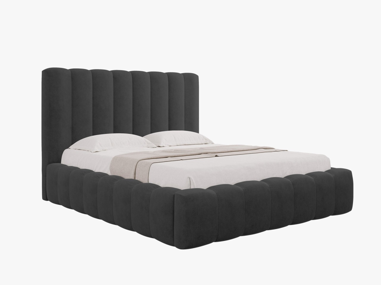 Patul Kelp 140x200 cm, din stofă, îmbină cu eleganță designul clasic cu detalii rafinate. Tăblia înaltă, tapițată cu material moale, oferă un confort sporit, ideal pentru momentele de relaxare sau lectură. Finisajele impeccable reflectă măiestria artisanală, iar paleta de culori personalizabile permite integrarea sa în diverse stiluri de decor, de la clasic la modern. Dimensiuni: Lungime 230 cm, Lățime 165 cm, Înălțime tăblie 125 cm. Salteaua nu este inclusă, iar produsul este destinat auto-asamblării, cu instrucțiuni incluse.