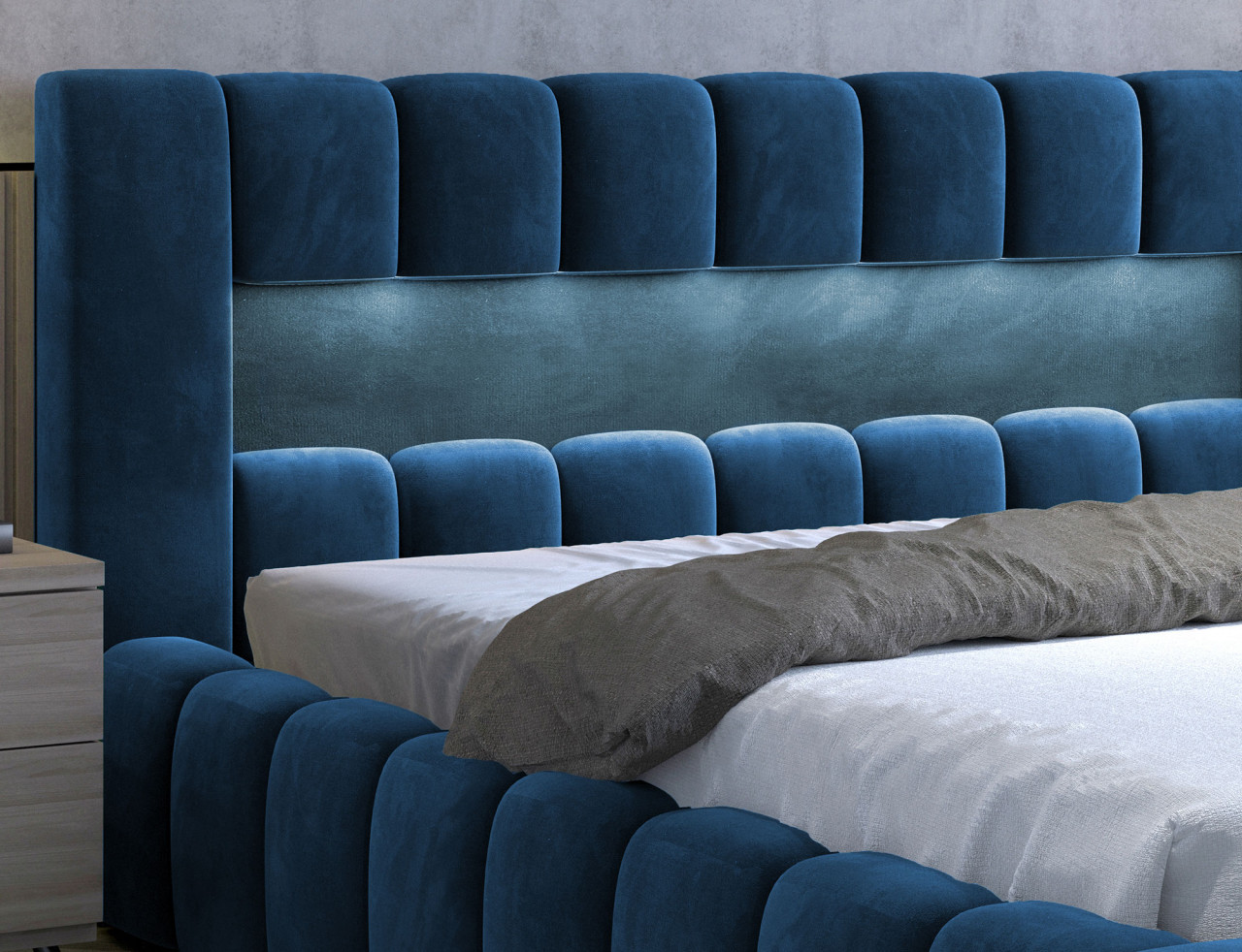 Patul Lamica 160x200 cm Monolith 77 cu somieră metalică îmbină stilul glamour cu confortul esențial pentru un somn odihnitor. Cu o tetieră înaltă și părți laterale tapitate cu spumă suplimentară, acest pat aduce un plus de eleganță în dormitorul tău. Dispune de două compartimente spațioase pentru lenjerie și este dotat cu iluminare LED, transformând momentele de relaxare într-o experiență deosebită. Produsul se livrează nemontat, dar montarea este rapidă și ușoară. Personalizabil în funcție de culoare și material, Patul Lamica se adaptează perfect preferințelor tale.