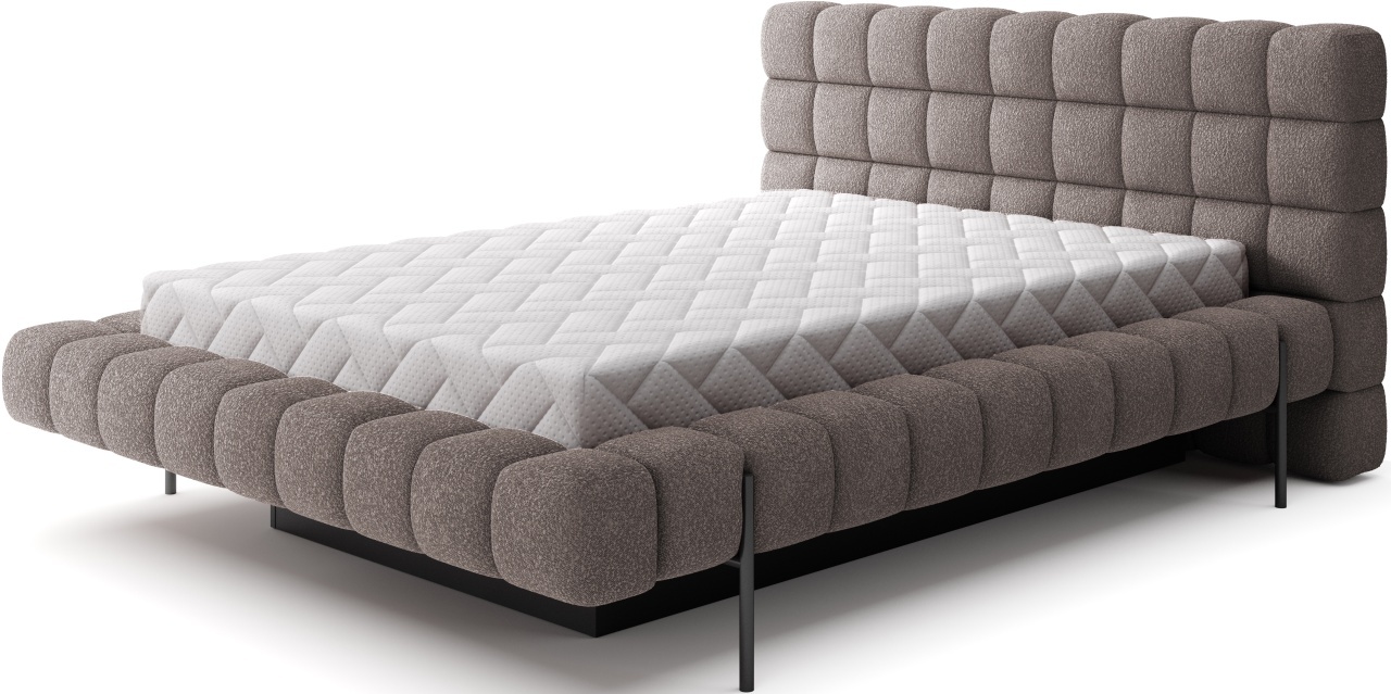 Patul Magentta 140x200 cm Jaffray 03 îmbină designul modern cu funcționalitatea și confortul deosebit. Cu un spate tapițat elegant, aduce o notă de căldură în orice dormitor. Structura solidă și spătarul umplut cu spumă T2130 oferă suport excelent pentru somn și relaxare. Cadru metalic cu 36 de lamele asigură durabilitate și confort. Piciorul negru din metal accentuează stilul minimalist, iar lada de depozitare pentru lenjerie optimizează spațiul. Patul este personalizabil în funcție de culoare și material, fiind o alegere ideală pentru cei care apreciază confortul și soluțiile funcționale.