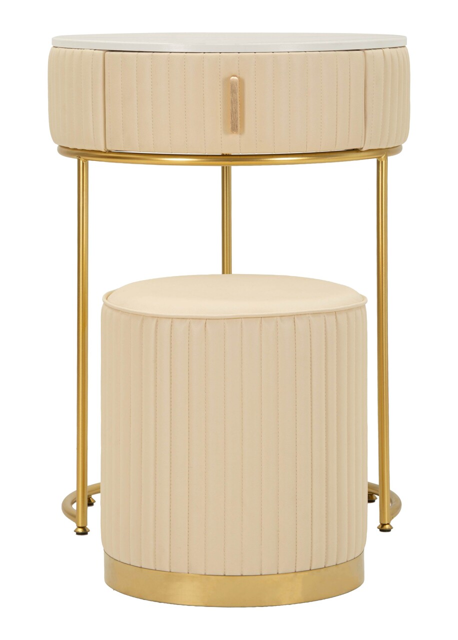 Set masuta dressing si taburet Mauro Ferretti Pok 52x52x70 cm lemn de pin/piele ecologica alb/auriu