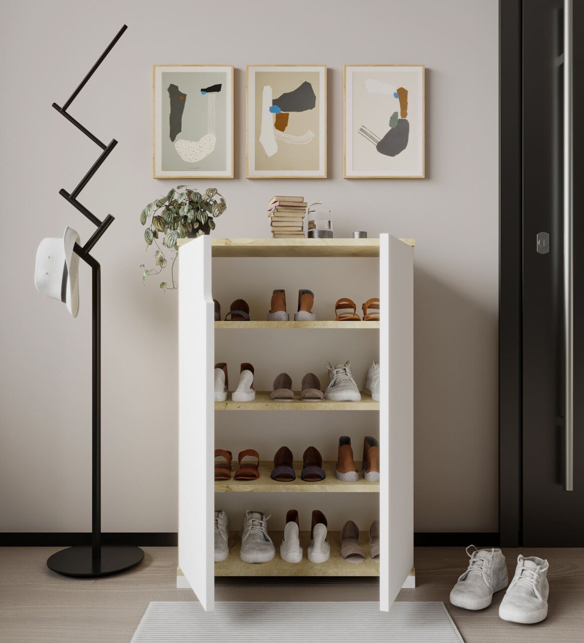 Descopera pe StradaFericirii o gama variata de mobilier hol - cuiere, pantofari, dulapuri depozitare si banci cu spatii de depozitare, in diferite culori (pe alb, crem, negru, gri sau maro) si stiluri (minimalist, clasic, modern sau vintage).