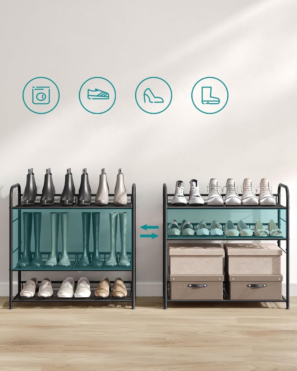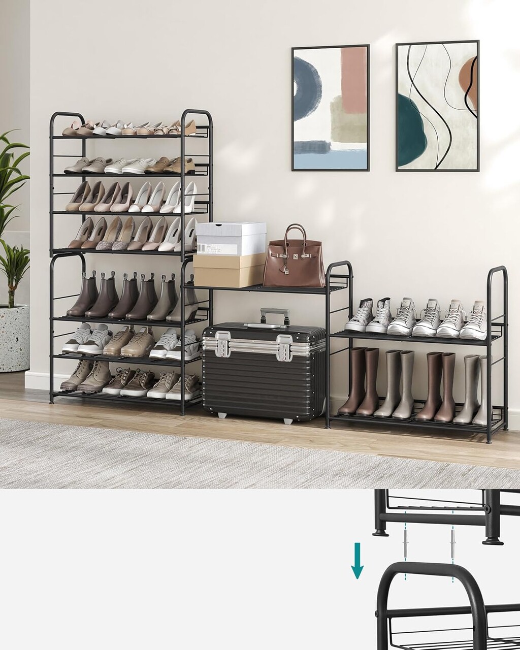 Suport pentru pantofi cu 4 niveluri Songmics 16 perechi pantofi 68.5x27.5x65 cm otel negru