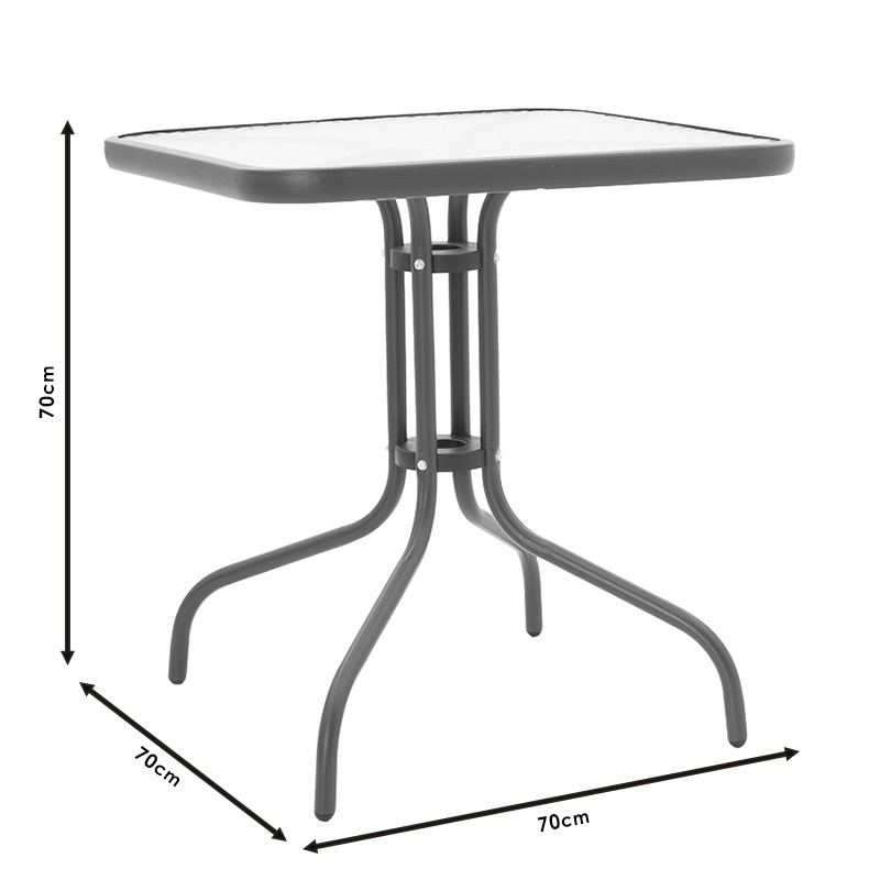 Set de 3 buc masa si scaune de gradina Watson Confidence metal in nuanta de carbune 70x70x70 cm