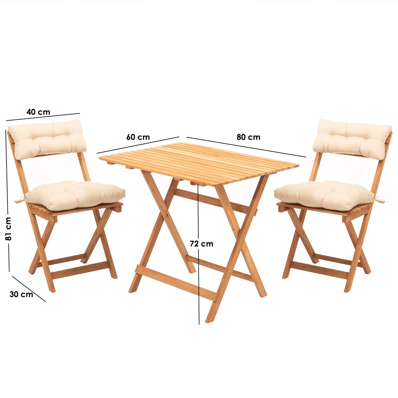 Setul de mobilier de grădină Hanah Home My003A, în nuanțe naturale și cremă, este perfect pentru petrecerea timpului în aer liber. Acesta include o masă elegantă și două scaune confortabile, toate realizate fără lac și vopsea de conservare pe bază de apă, asigurând un impact redus asupra mediului. Masa are dimensiuni de 80 cm lățime, 72 cm înălțime și 60 cm adâncime, în timp ce scaunele măsoară 40 cm lățime, 81 cm înălțime și 30 cm adâncime. Acest set este ideal pentru a adăuga un strop de stil și confort în grădina dumneavoastră.