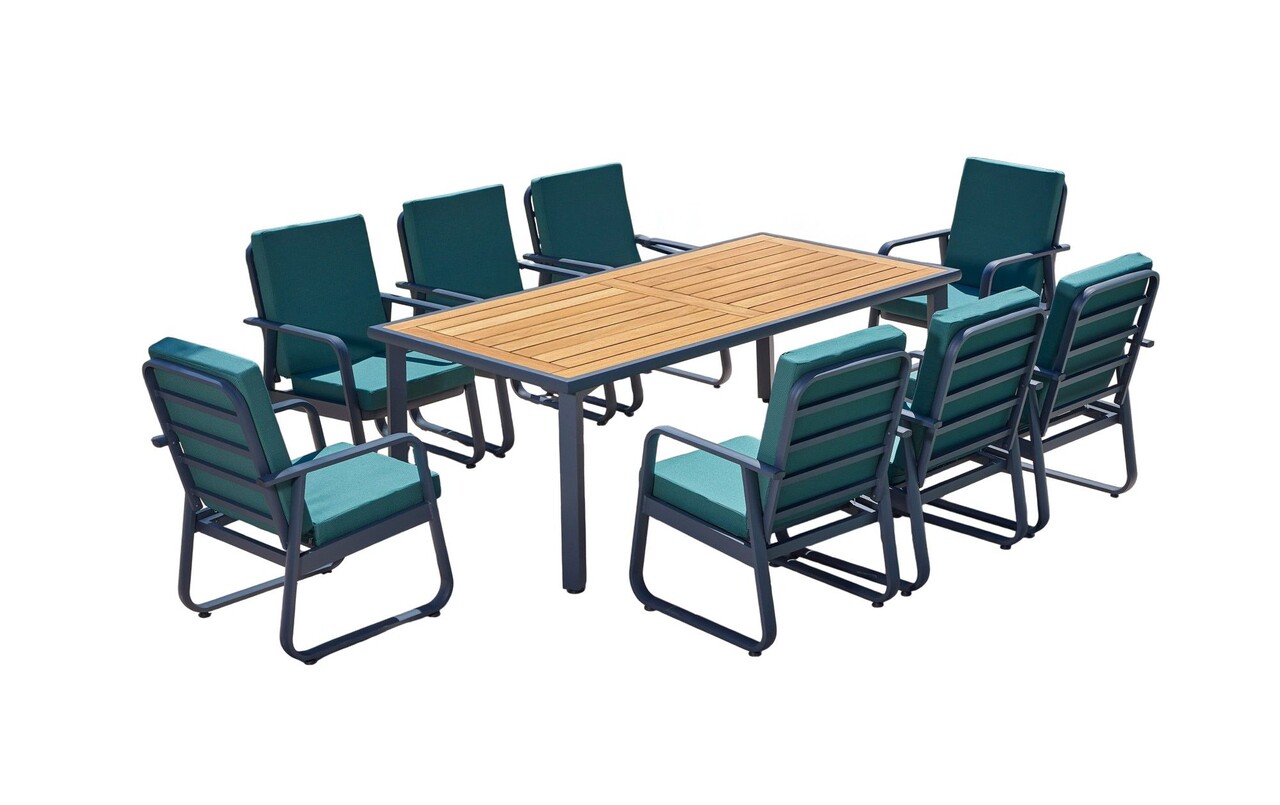 Setul de mobilier de grădină Hanah Home Milano Antracit / Lemn aduce un plus de eleganță și confort în orice spațiu exterior. Blatul mesei este realizat din 100% IRIKO TRE, asigurând durabilitate și rezistență la intemperii. Măsuța are dimensiuni generoase, având lățimea de 235 cm, înălțimea de 75 cm și adâncimea de 105 cm, perfectă pentru a găzdui întâlniri cu prietenii sau familia. Cele 8 scaune, cu lățimea de 63 cm, înălțimea de 91 cm și adâncimea de 60 cm, oferă un confort sporit, fiind ideale pentru momentele de relaxare în aer liber.