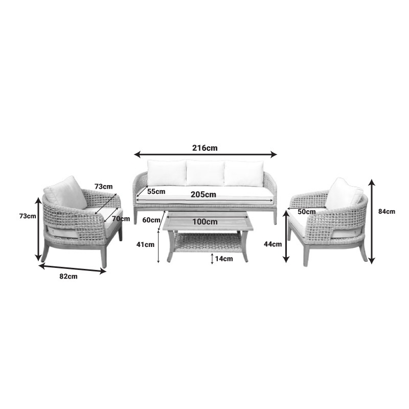 Set de gradina 4 buc. Riviera Natural 215x80x73 cm