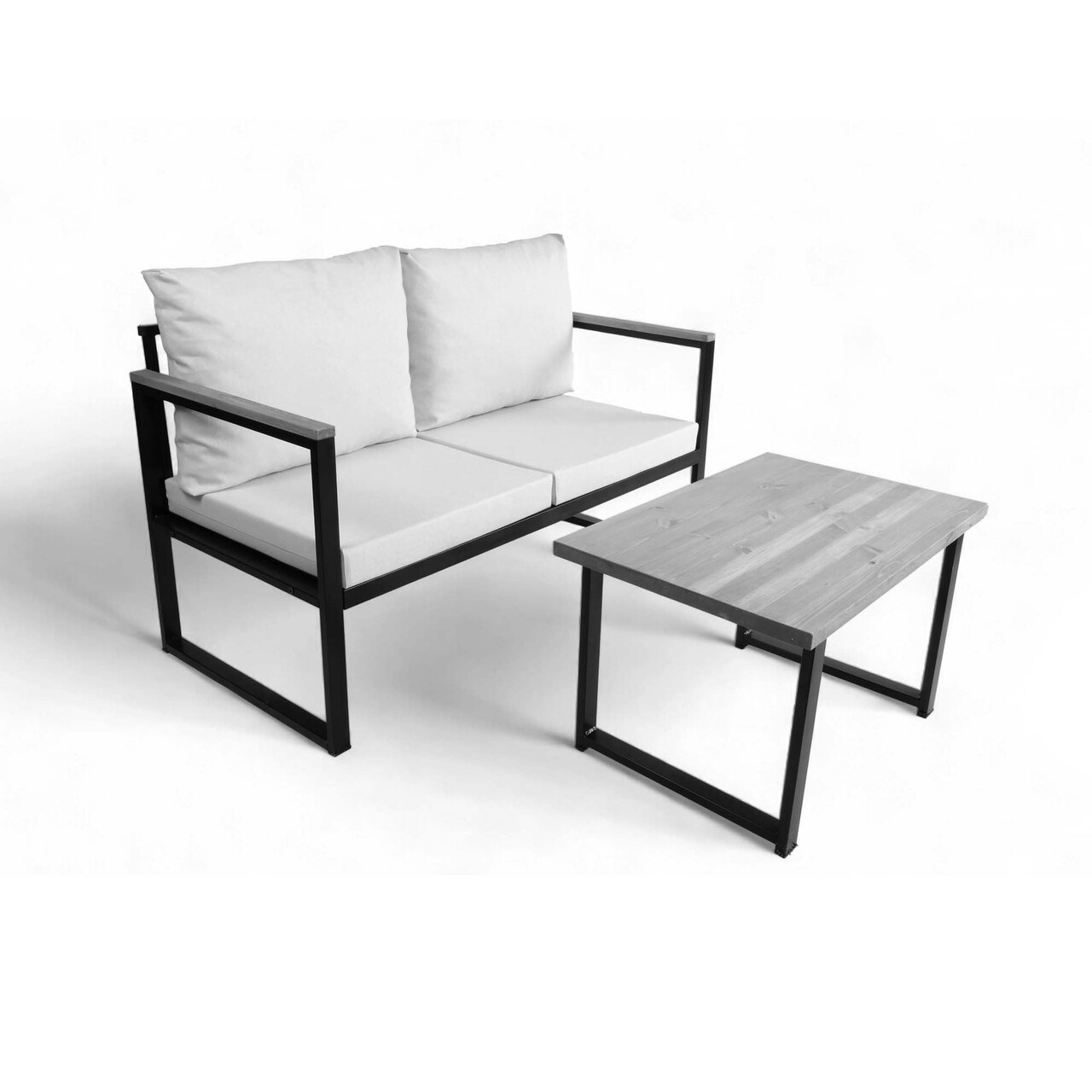 Set mobilier de gradinaTesatura: InPartea de sus a brațelor: Lemn de pinSpuma 28 DNS pentru sezut (8 cm)Canapea 2 locuri: Latime: 130 cm Inaltime: 75 cm Adancime: 62 cm (1 piesa)Masuta de cafea: Latime: 75 cm Inaltime: 45 cm Adancime: 50 cm (1 piesa)