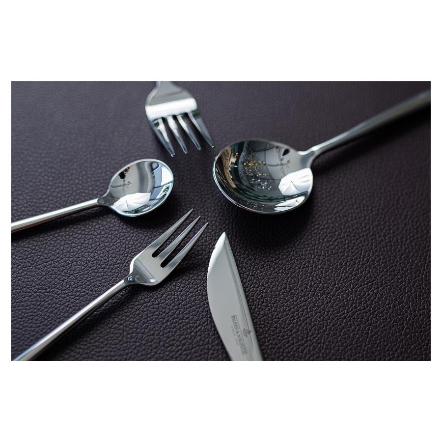 Setul de tacamuri LOTUS, realizat din inox de calitate superioară 18/10, este perfect pentru 6 persoane, incluzând 30 de piese esențiale. Fiecare tacâm se distinge prin greutatea optimă, grosimea adecvată și finisajele impecabile, oferind o strălucire deosebită și o rezistență excelentă la zgârieturi. Producătorul german Picard & Wielputz, cu o experiență de peste 80 de ani în domeniu, garantează calitatea superioară a acestor produse, care respectă standardele înalte ale industriei hoteliera și reflectă renumele regiunii Solingen din Germania. Acest set va adăuga un plus de eleganță meselor tale.