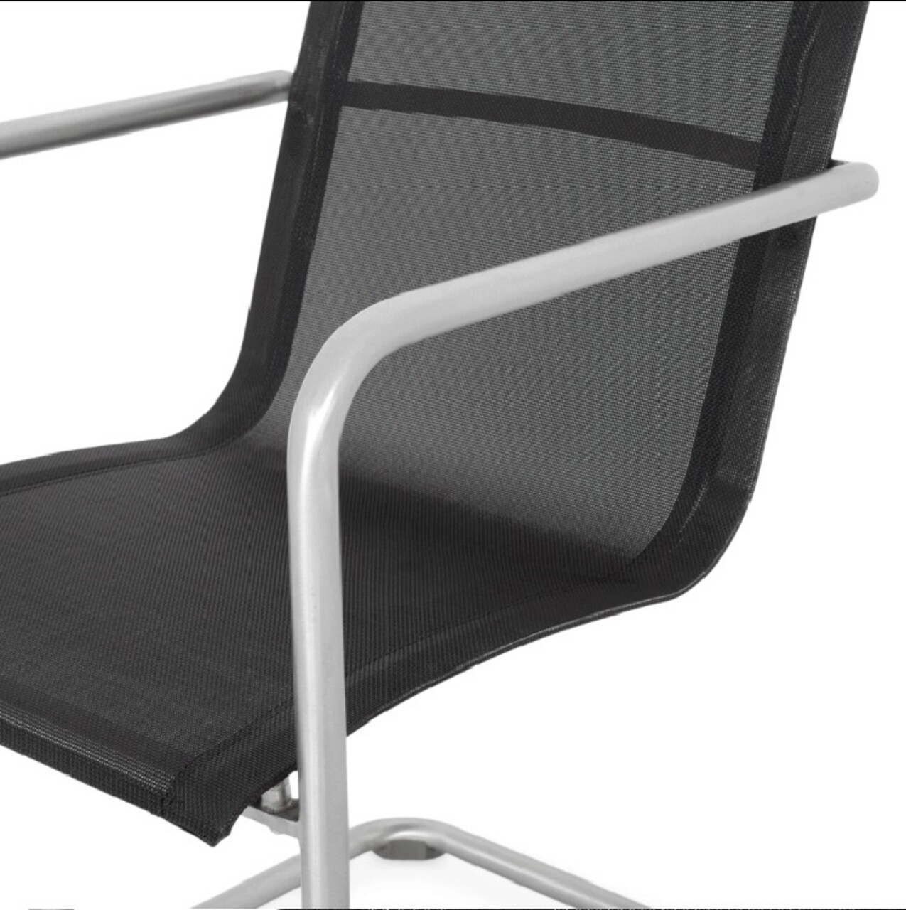 Realizat din structura solida de inox. Sezutul si spatarul sunt imbracate cu textilina fina cu protectie UV.