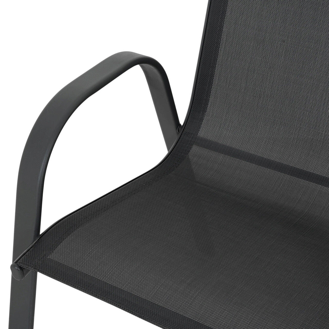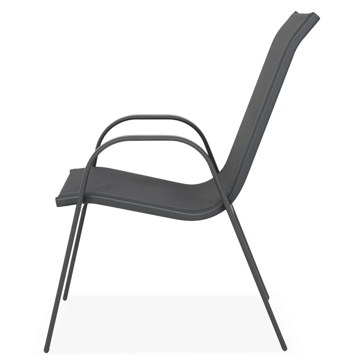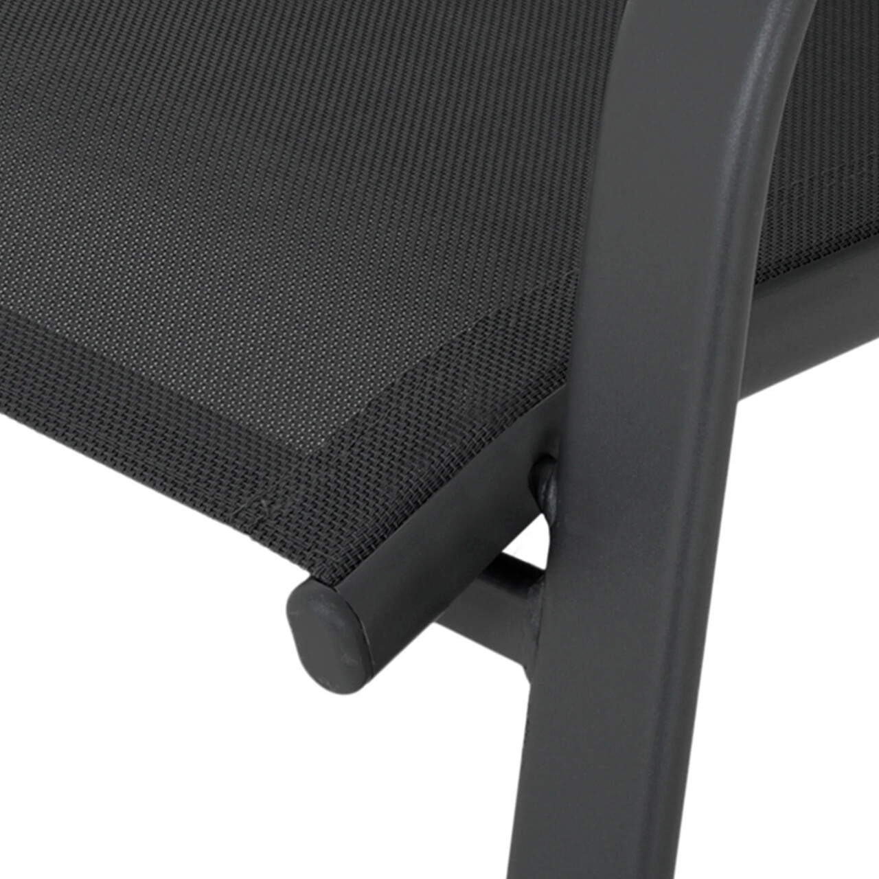 Structura solida din otel vopsita in camp electrostrostatic. Sezutul si spatarul sunt realizate din textilina fina cu protectie UV.