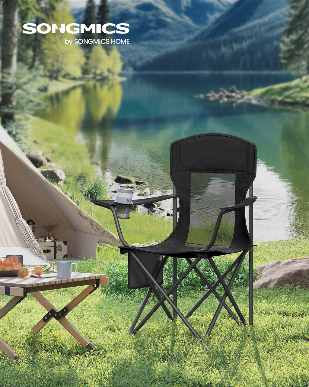 Set 2 scaune pliabile pentru camping si gradina Songmics max 150 kg 86.5x51.5x97 cm otel/tesatura Oxford negru