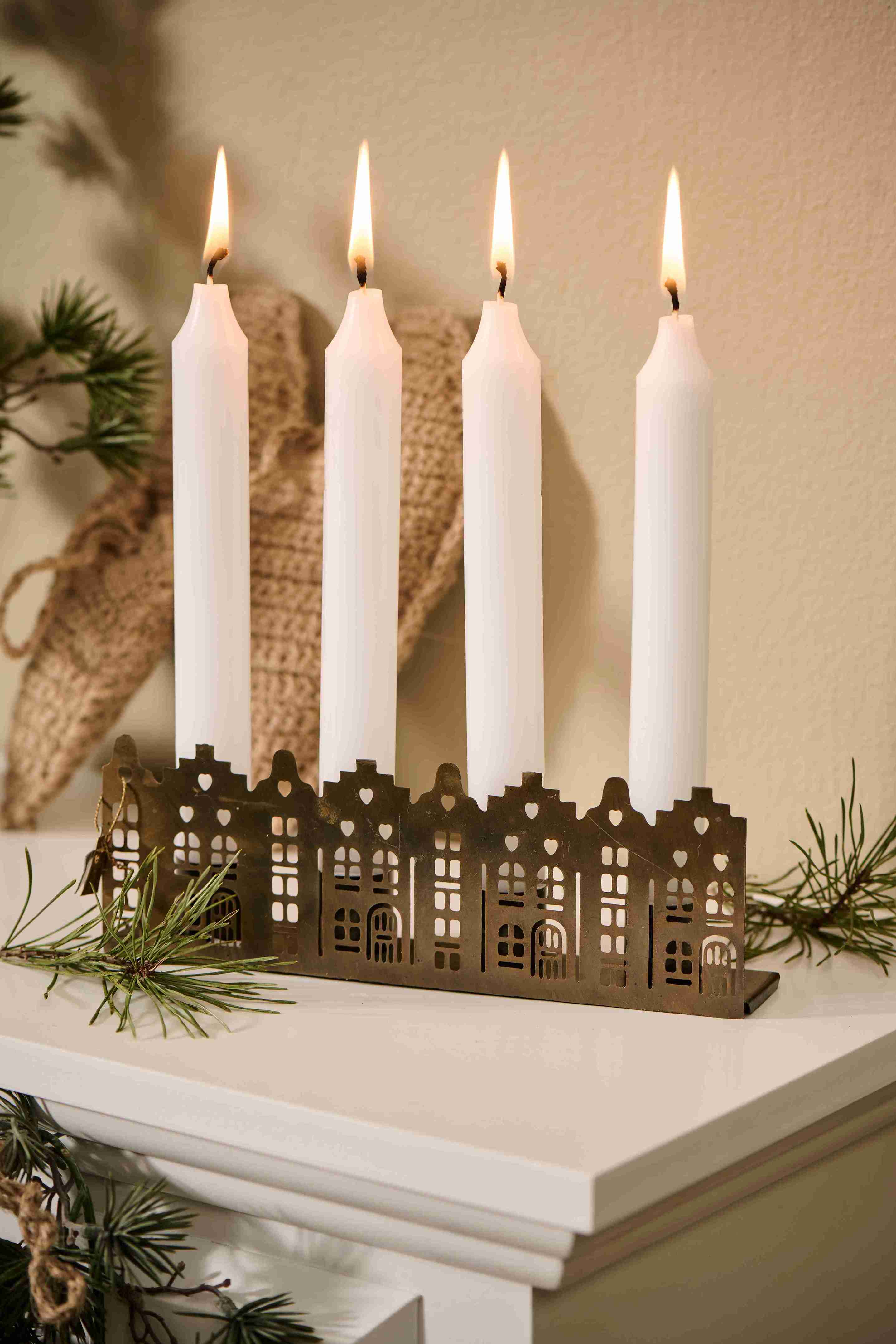 Îmbogățiți-vă decorul de Crăciun cu sfeșnicul de Advent model casuțe FACADES de la IB Laursen. Fabricat din metal de bronz, acest sfeșnic are dimensiuni de 19,5 cm lungime, 3,5 cm lățime și 6,5 cm înălțime, fiind perfect pentru lumânări cu un diametru de până la 2,2 cm. Designul său elegant și durabil aduce un strop din atmosfera nordică în casa dumneavoastră, evocând tradițiile scandinave de sărbătoare. Întreținerea este simplă, iar acest sfeșnic este ideal pentru a crea o ambianță caldă și primitoare în orice colț al căminului vostru.