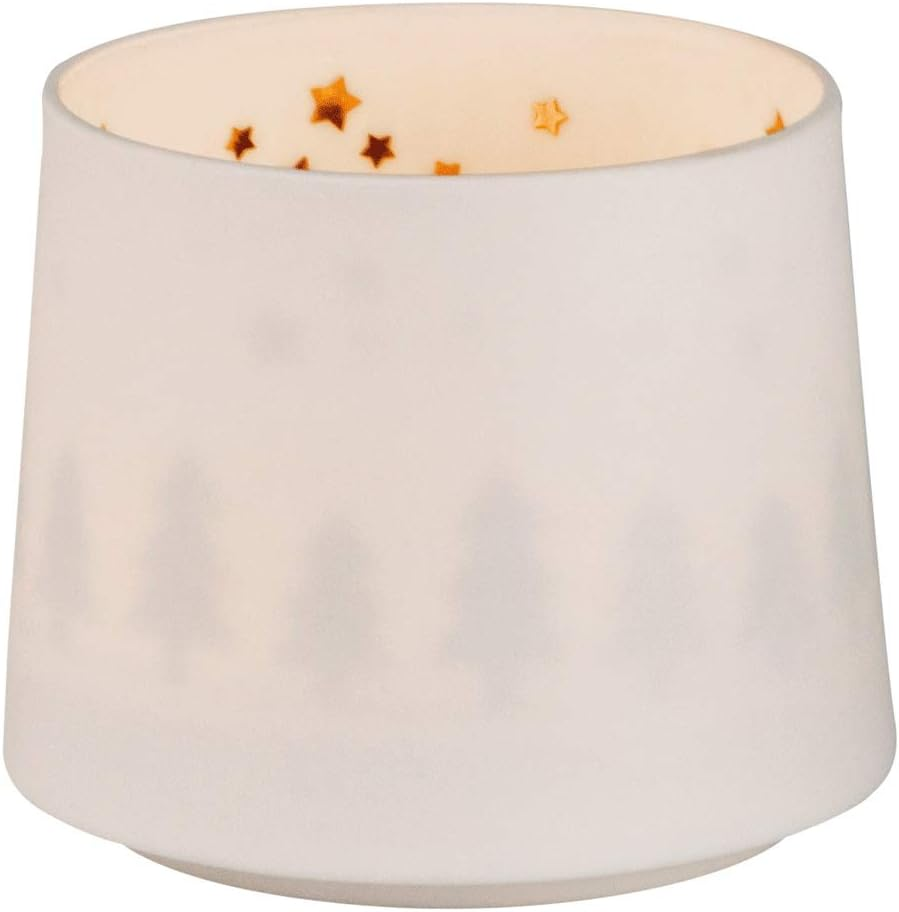 Sfeșnicul din portelan alb Räder FIR FOREST aduce atmosfera de Crăciun nordică în casa ta. Cu dimensiunile de 7,5 cm diametru și 6,5 cm înălțime, acest sfeșnic este decorat cu motive de pădure și aur, inspirat din tradițiile nordice de sărbătorire a Crăciunului. Perfecționat pentru a aduce un strop de eleganță și farmec în timpul sărbătorilor de iarnă.