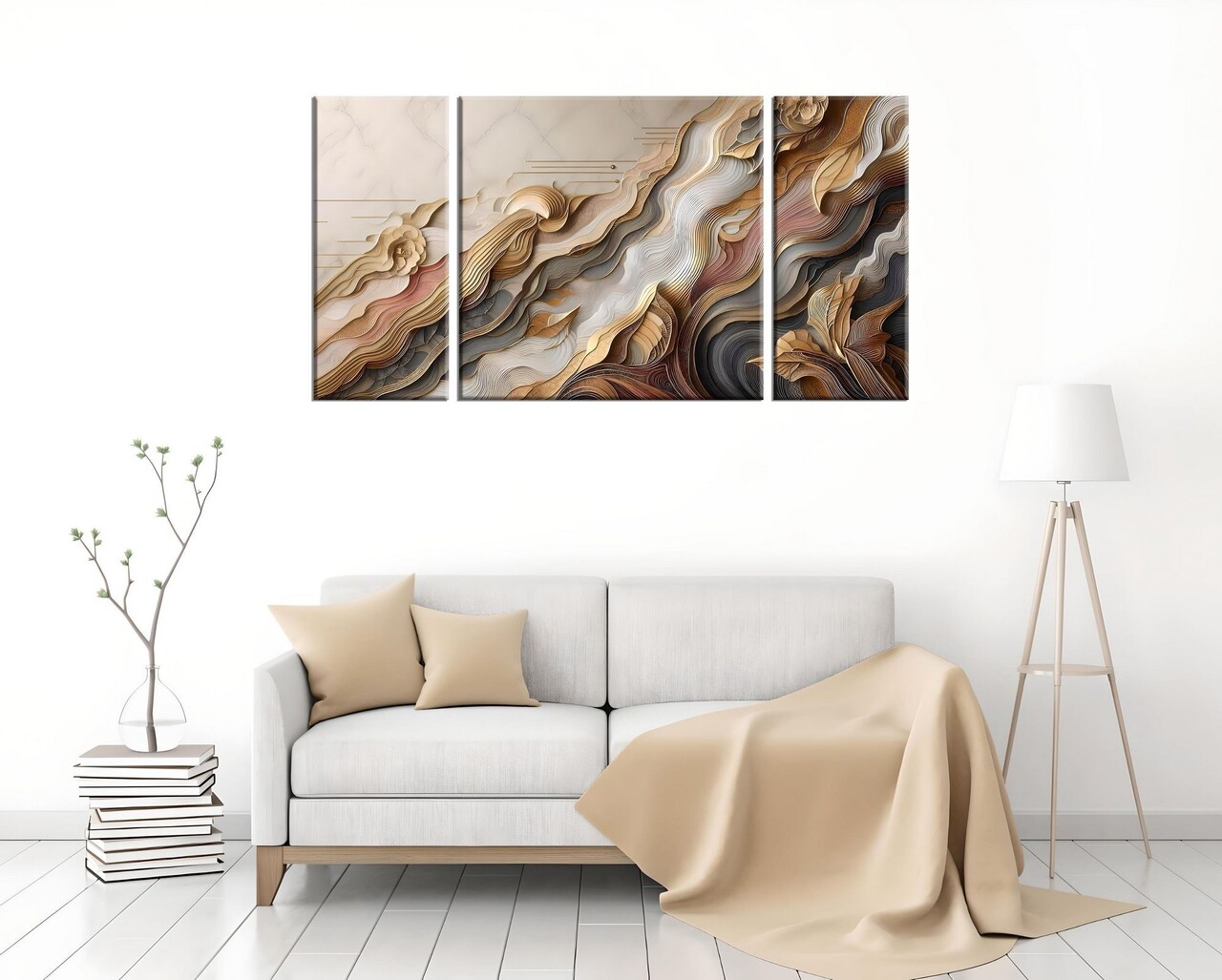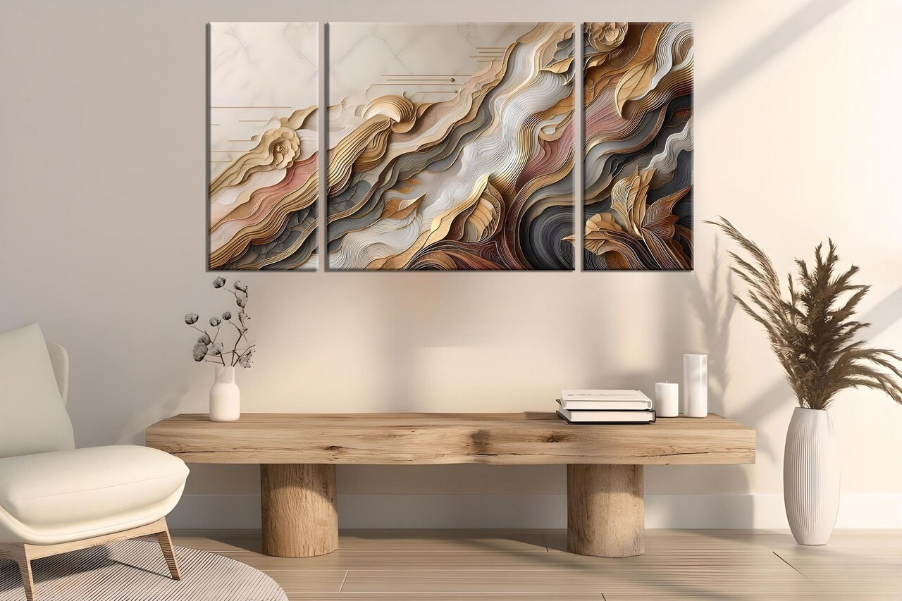 Tablou decorativ (3 piese)Cadru: Lemn (Grosime: 2 cm)Canvas imprimatMarime: 20 x 45 cm (2 piese)Marime: 45 x 45 cm (1 piesa)
