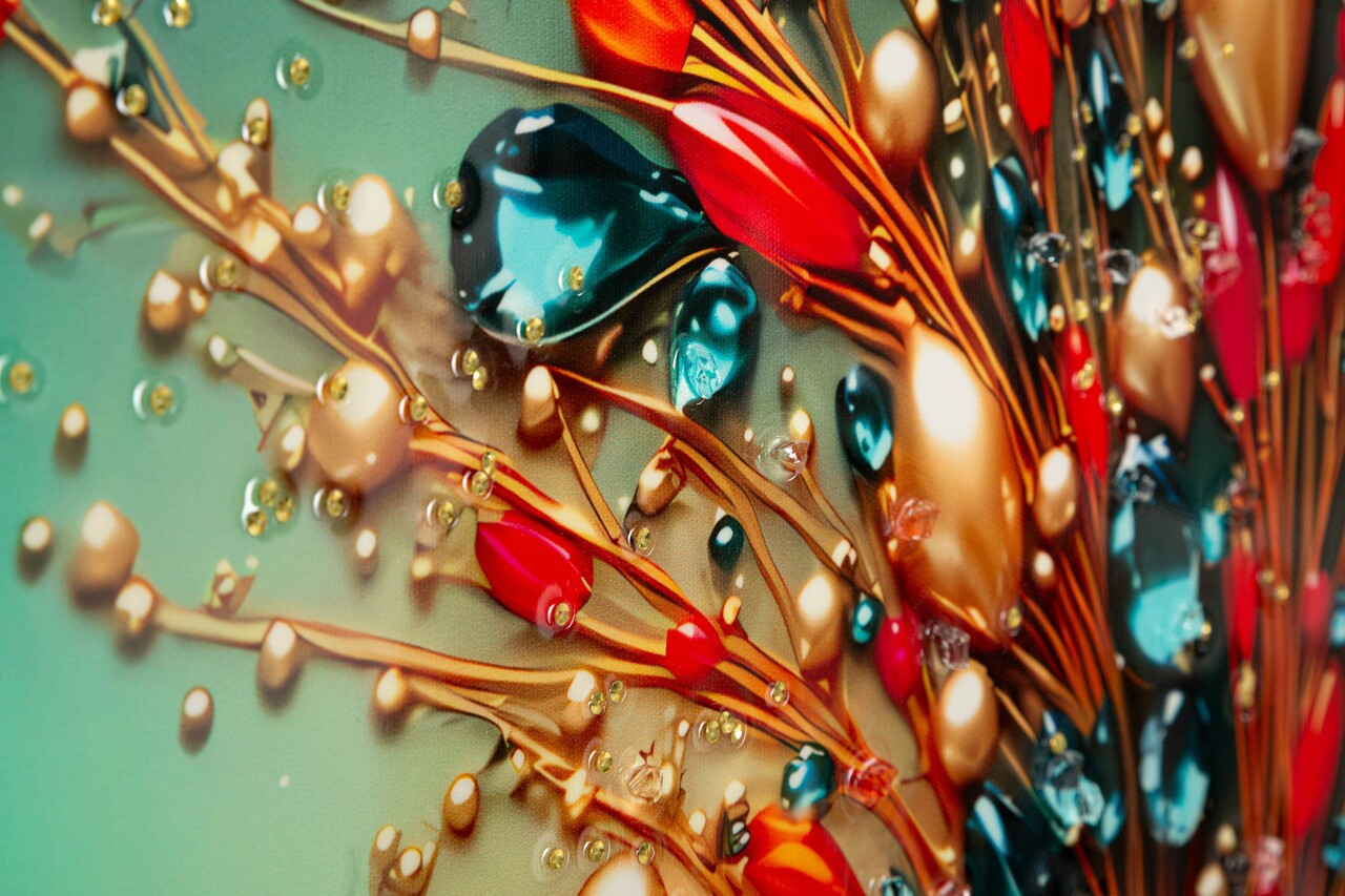 Un zbor de fluturi care se evidentiaza printre accente colorate si nuante vibrante. O decoratiune ce aduce energie pozitiva si frumusete delicata.Tablou imprimat pe canvasCompozitie material: lemn de brad, canvas, plastic.