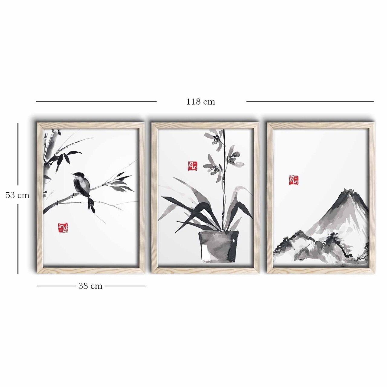 Tablou decorativ (3 piese)Cadru: LemnMarime: 38 x 53 cm (3 piese)Marimea totala: 118 x 53 cm