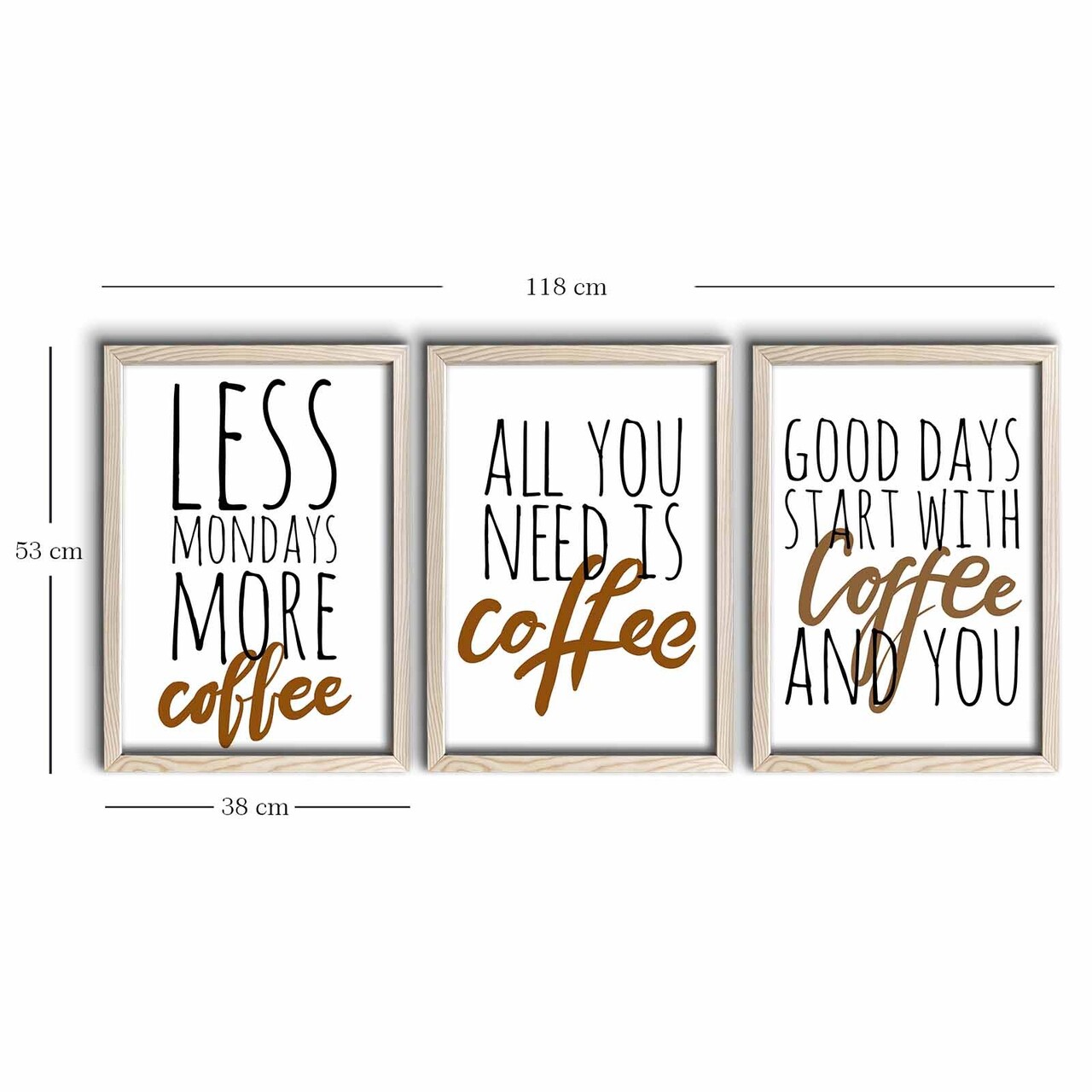 Tablou decorativ (3 piese)Cadru: LemnMarime: 38 x 53 cm (3 piese)Marimea totala: 118 x 53 cm