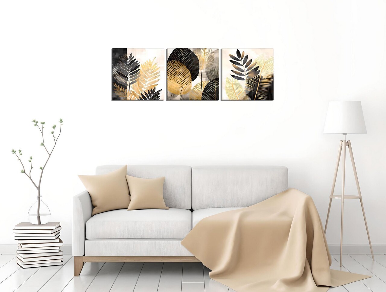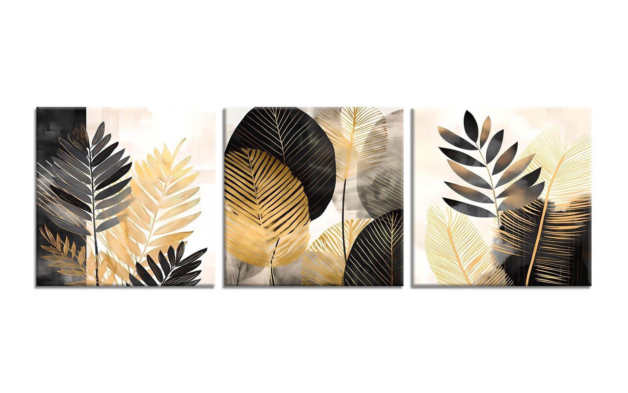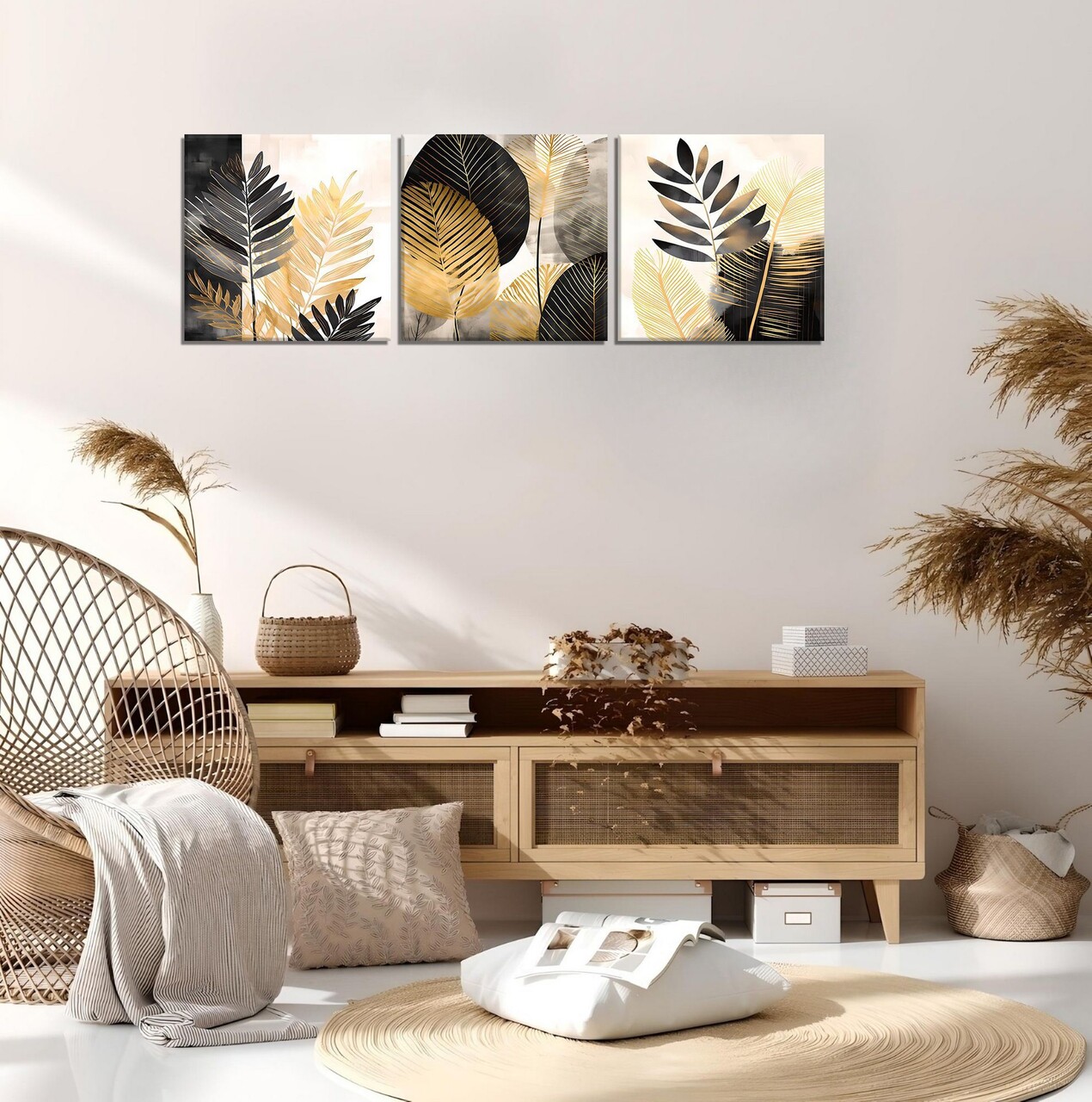 Set 3 tablouri decorative FAH23 Cadru: 100% LEMN (Grosime: 2 cm) Aur/Negru