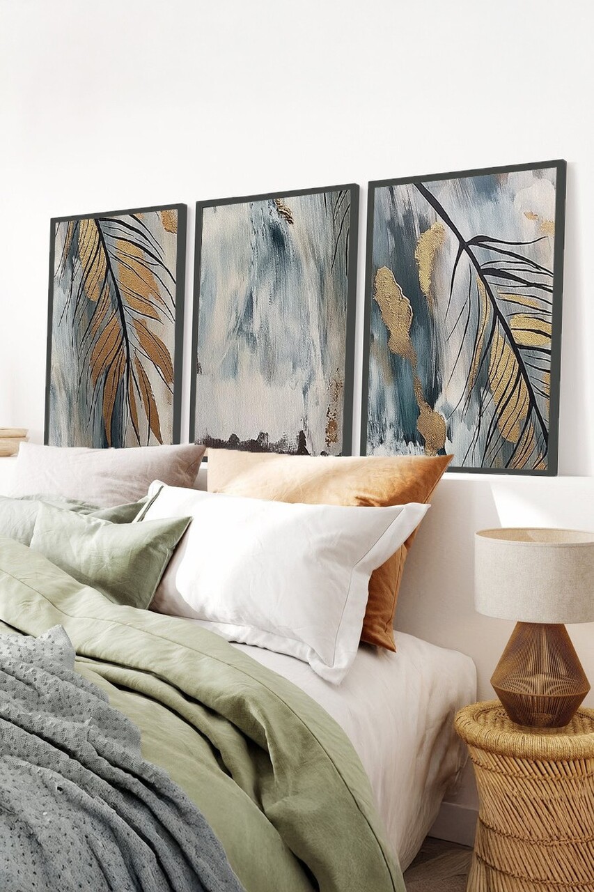 Tablou decorativ (3 piese)Cadru: Lemn masiv (Grosime: 2,5 cm)Marime: 50 x 70 cm (3 piese)