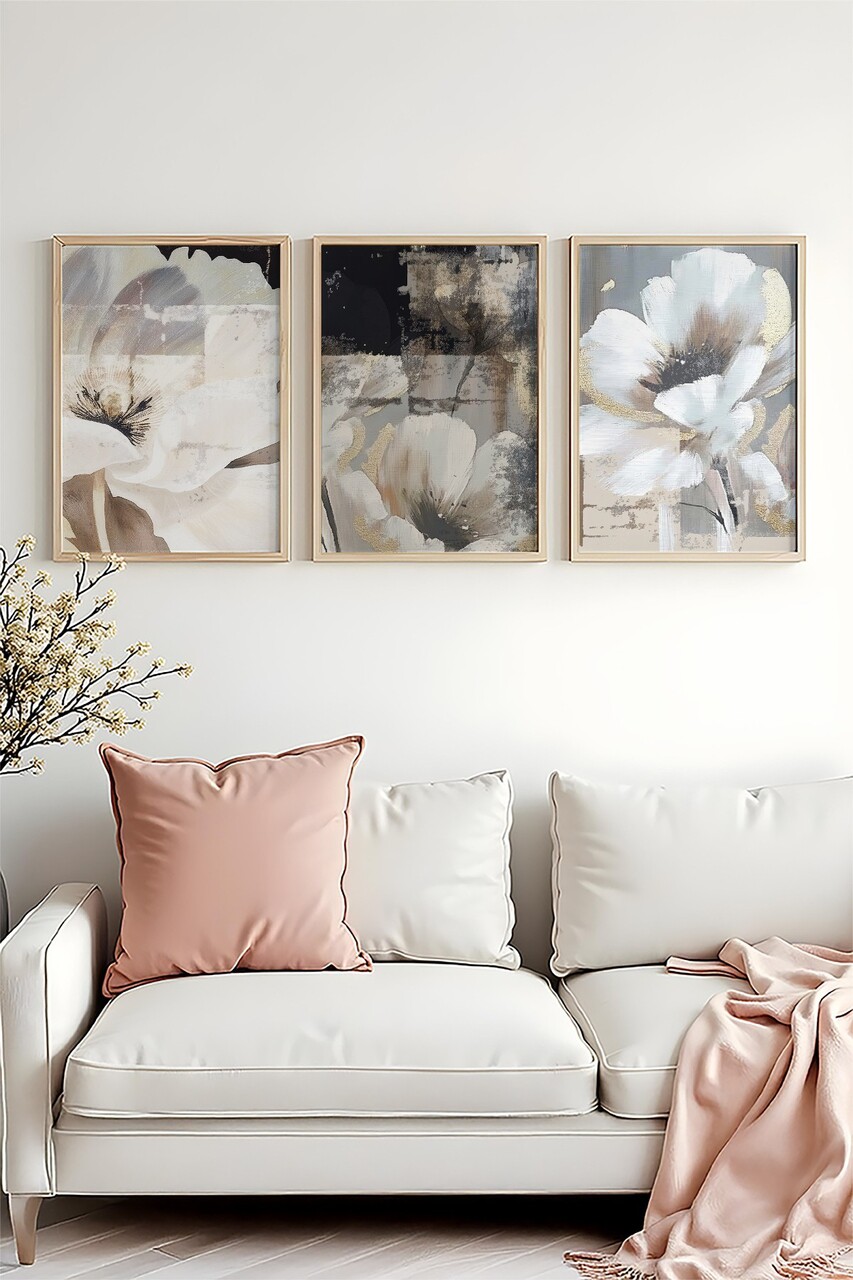 Tablou decorativ (3 piese)Cadru: Lemn masiv (Grosime: 2,5 cm)Marime: 35 x 50 cm (3 piese)