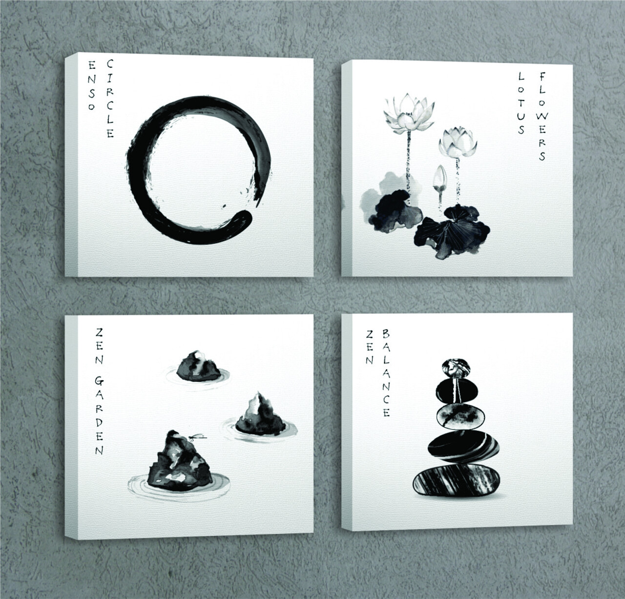 Tablou decorativ (4 piese)Rama de lemnCanvas imprimatMarime: 30 x 30 cm (4 piese)