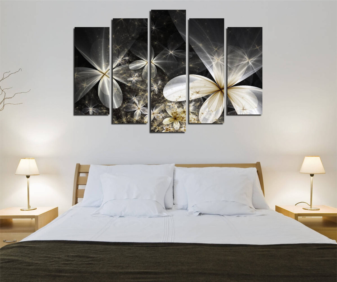Tablou decorativ (5 bucăți)Marime: 70 x 20 cm (1 piesa)60 x 20 cm (2 piese)50 x 20 cm (2 piese)Marimea totala: 105 x 70 cmCadru: 100% din lemn (Grosime: 3 cm)