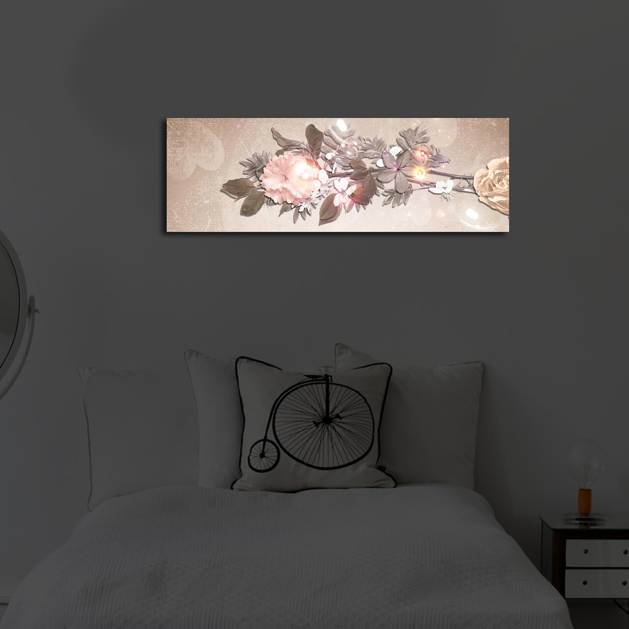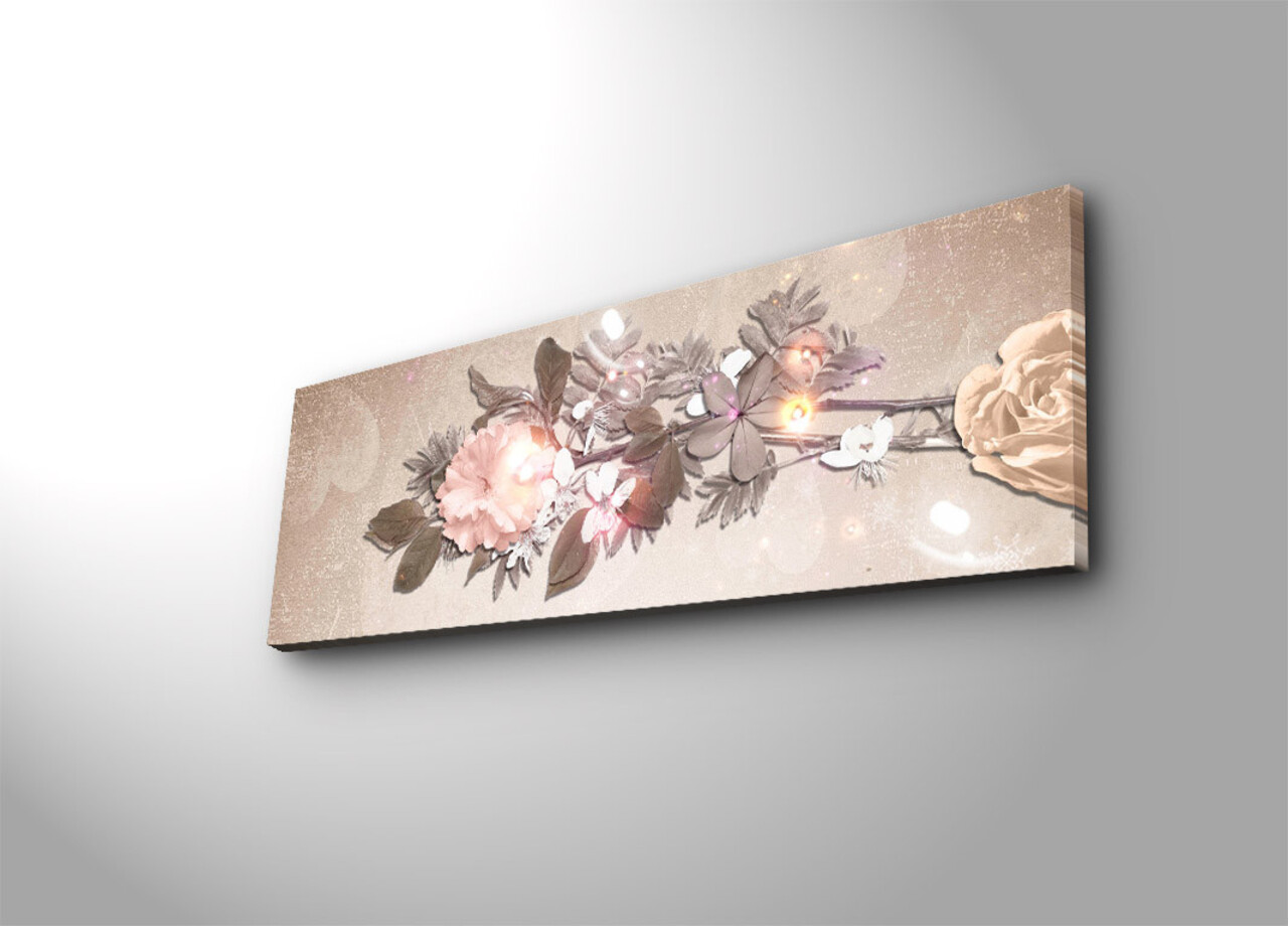Tablou decorativ cu lumina LEDMarime: 30 x 90 cmCadru: 100% din lemn (Grosime: 3 cm)Lumini LED în interiorAlimentat de 1 baterie de 9 volțiButon de pornire/oprire