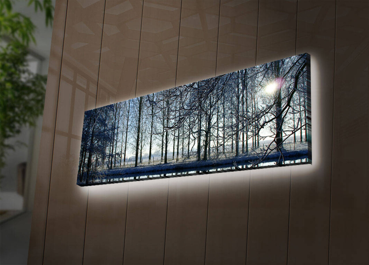 Tablou decorativ cu lumina LEDMarime: 30 x 90 cmCadru: 100% din lemn (Grosime: 3 cm)Lumini LED SpateAlimentat de 1 baterie de 9 volțiButon de pornire/oprire