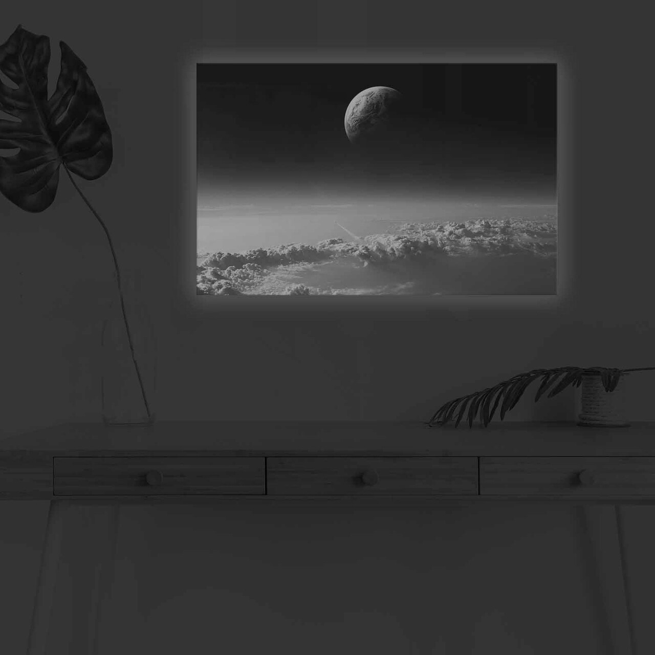 Tablou decorativ cu lumina LEDMarime: 45 x 70 cmCadru: 100% din lemn (Grosime: 3 cm)Lumini LED SpateAlimentat de 1 baterie de 9 volțiButon de pornire/oprire