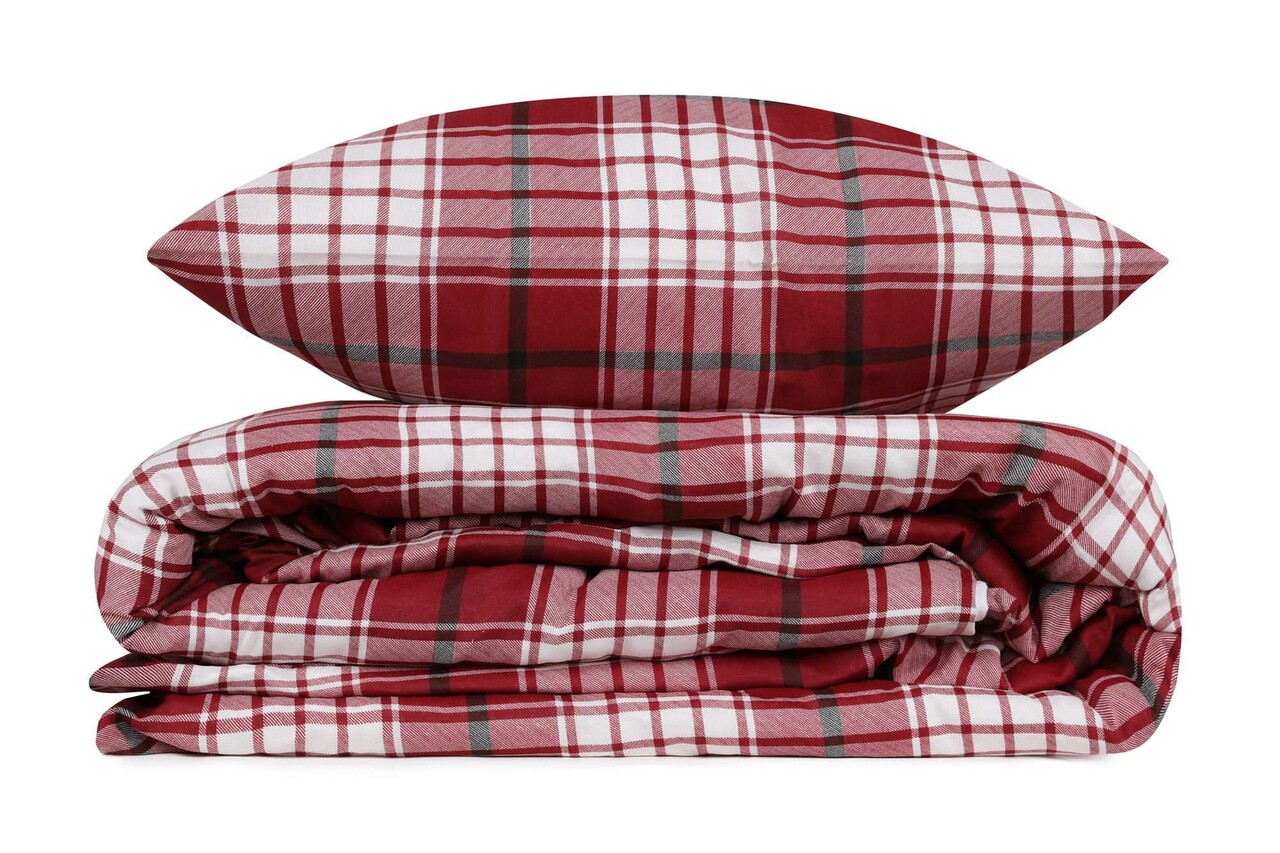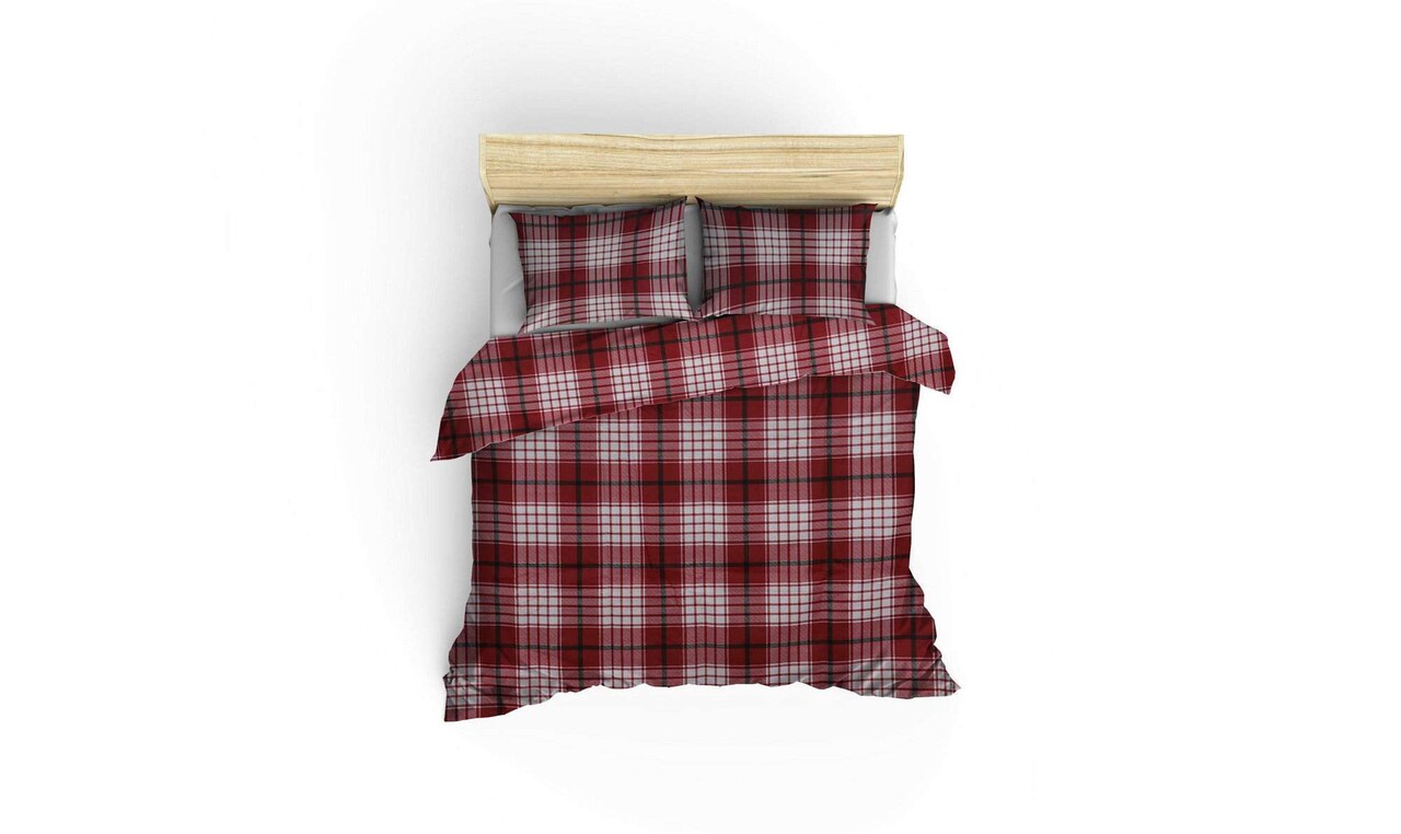 Lenjerie de pat dubla Super King (FR) 3 piese L'essentiel Maison Ekose v2 Rosu/Alb