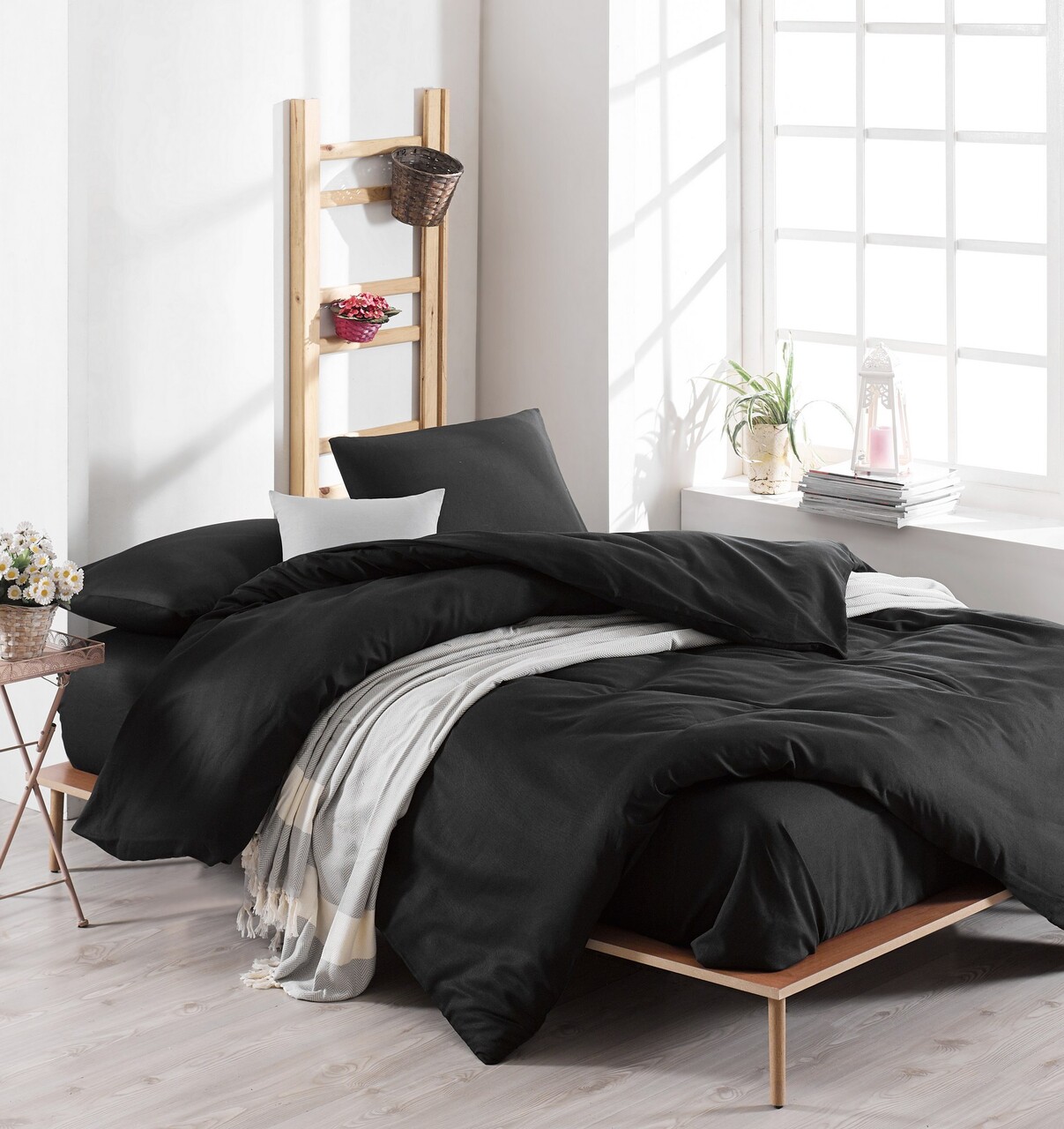 Lenjerie de pat dubla Super King (FR) 3 piese L'essentiel Maison Solid Negru