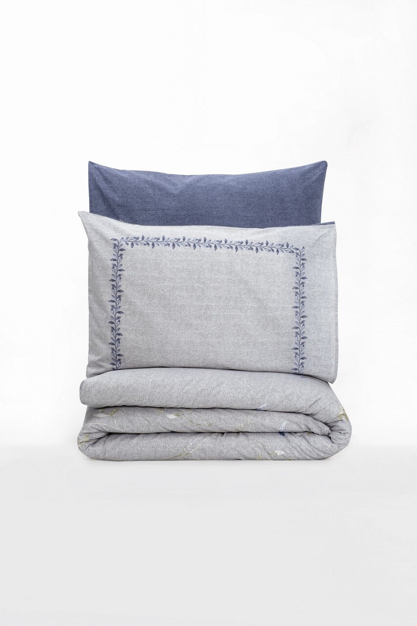 Lenjerie de pat dubla Super King (FR) L'essentiel Maison Nitsa Albastru închis / Gri deschis
