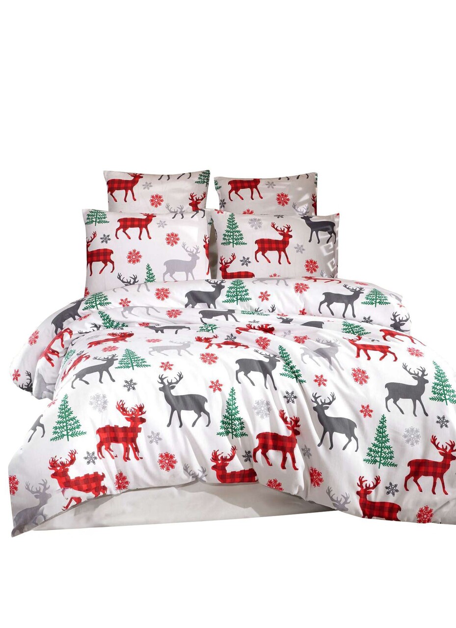 Lenjerie de pat pentru o persoana (EU) (IT) 2 piese L'essentiel Maison Geyik Alb / Roșu / Verde / Gri