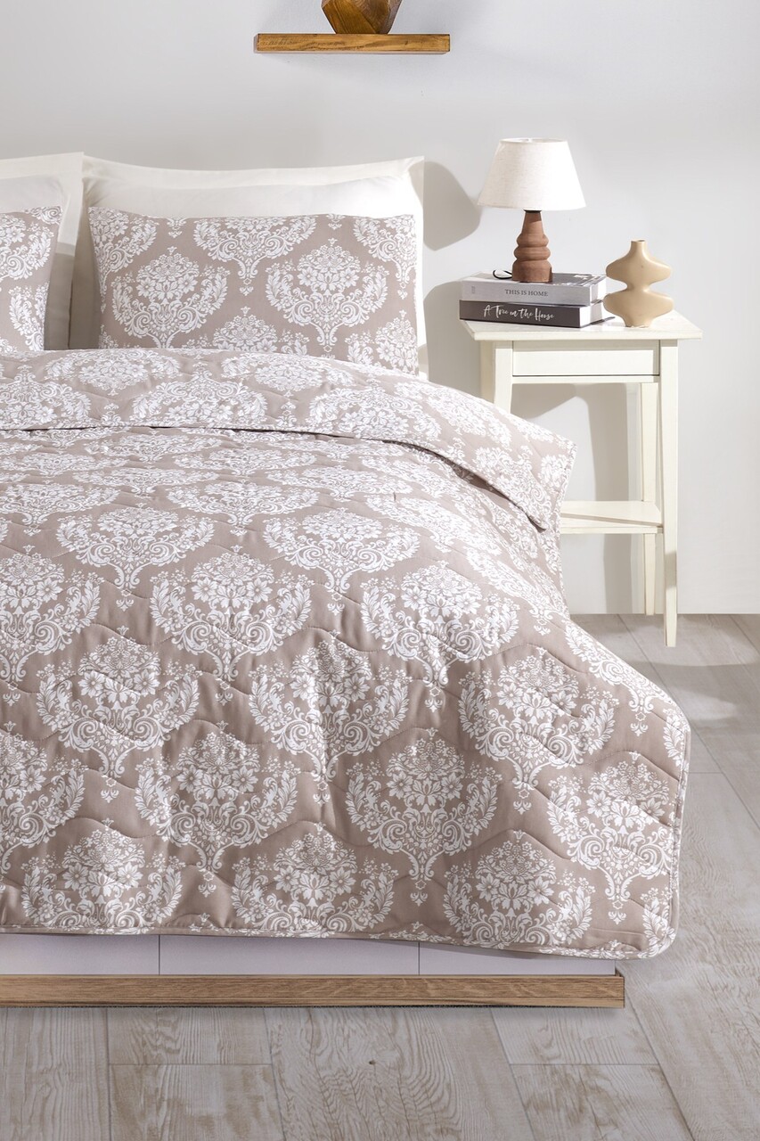 Set cuvertura de pat dubla 3 piese L'essentiel Maison Post Alb/Maro
