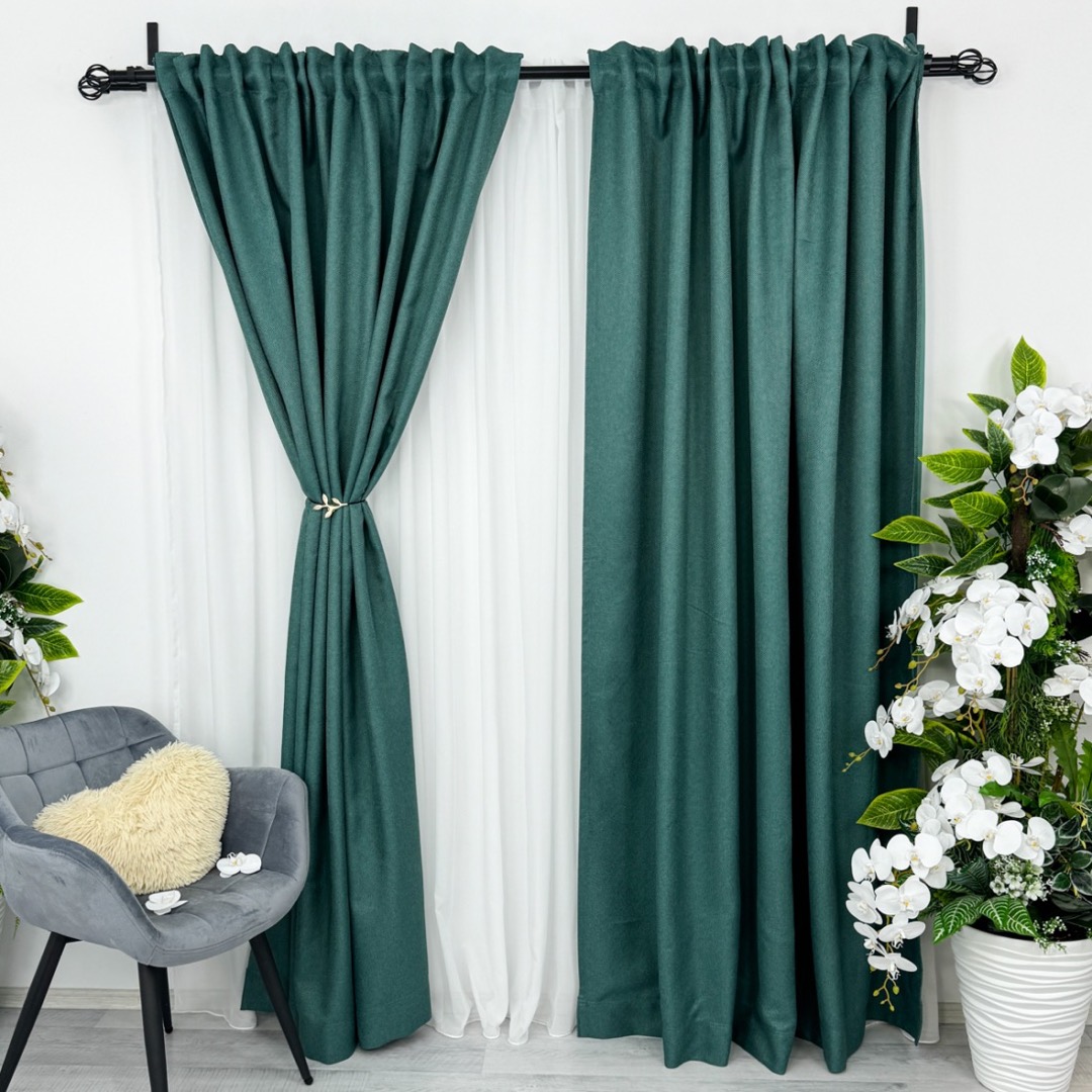 Set 2 bucati de Draperie HoReCa TEXTURATA tip IN Verde-2m latime x 2.32m inaltime cu rejansa pt bara