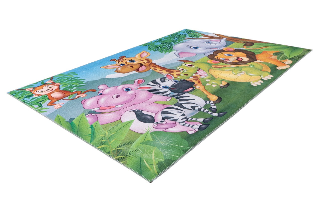 Descoperă covorul pentru copii My Torino Kids – un univers plin de culoare și educație pentru micuțul tău Covorul pentru copii My Torino Kids reprezintă o alegere excepțională pentru a crea un ambient plin de culoare, siguranță și educație în camera celor mici. Cu un design multicolor și atrăgător , acest covor de dimensiuni 80x120 cm aduce un plus de căldură și veselie în orice spațiu destinat celor mici. Design educațional și stimulativ pentru imaginație Proiectat pentru a stimula curiozitatea și învățarea , covorul prezintă teme captivante precum harta lumii, sistemul solar, peisaje urbane și animale . Acest model ajută copiii să descopere lumea în mod jucăuș și interactiv , fiind o metodă distractivă de a învăța primele denumiri în limba engleză . Astfel, micuții pot înțelege mai ușor complexitatea lumii și pot dezvolta abilități cognitive încă din primii ani. Calitate superioară și durabilitate Fabricat din materiale de înaltă calitate , covorul My Torino Kids este rezistent și ușor de întreținut . Tehnologia de țesut Jacquard, utilizată pentru realizarea acestui covor, asigură modele complexe și detaliate direct în țesătură, oferindu-i un aspect elegant și durabil . Materialul permeabil la căldură face ca acest covor să fie potrivit pentru încălzirea prin pardoseală , contribuind la un ambient confortabil și cald în camera copilului. Îngrijire simplă și sigură pentru sănătatea micuților Întreținerea covorului este foarte ușoară: aspirați regulat cu un aspirator obișnuit, evitând perii dure pentru a nu deteriora suprafața. Pentru pete, folosiți o cârpă umedă cu puțină apă. În plus, covorul este certificat OEKO-TEX® Standard 100 , ceea ce înseamnă că nu conține substanțe nocive și este sigur pentru pielea sensibilă a copiilor. Un cadou perfect pentru micuți – educație și distracție în același timp Achiziționând covorul My Torino Kids, oferiți copilului dumneavoastră un mediu sigur, educațional și plin de culoare . Este un cadou ideal pentru orice cameră de joacă sau dormitor, contribuind la dezvoltarea armonioasă a celor mici. Comandă acum și adu lumea în camera copilului tău! Nu rata ocazia de a oferi copilului tău un covor de calitate superioară , sigur și educațional . Achiziționează acum covorul My Torino Kids și transformă camera micuțului tău într-un spațiu plin de imaginație și învățare . Detalii tehnice Dimensiuni: 80x120 cm Grosime totală: 5 mm Înălțimea firului: 5 mm Forma: Dreptunghiulară Culori: Multicolor Model: Jungla cu animale drăgălașe Material față: 100% poliester Material verso: Latex antiderapant Țara de producție: Turcia Metoda de fabricație: Țesut mecanic la război automat (tehnică tradițională, industrială) Certificat OEKO-TEX®: Da, număr SHYO 112016 TESTEX, garantând siguranța pentru sănătate Recomandat pentru încălzire prin pardoseală: Da Greutate: 1.344 kg Densitate material: 1400 g/mp Ambalare: 80x10x10 cm