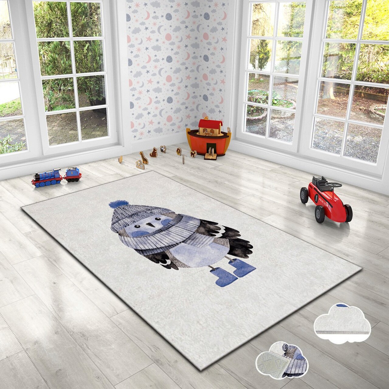 Covorul pentru copii Hmı Kdc-62, cu dimensiunile de 80 x 140 cm, aduce o notă de culoare și veselie în camera celor mici. Realizat din țesătură catifea, acesta beneficiază de o imprimare vibrantă care stimulează imaginația copiilor. Partea inferioară este dotată cu puncte din pâslă anti-alunecare, asigurând stabilitate și siguranță în timpul jocului. Cu un strat de burete laminat între materialul ușor de curățat și partea inferioară, covorul este și antibacterian, oferind un mediu curat și sănătos. Înălțimea firelor de 2 mm completează confortul și plăcerea de utilizare.