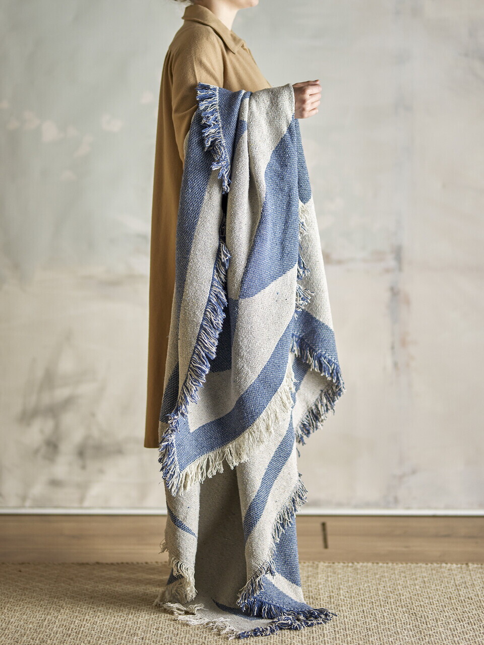 Pled Bloomingville Agno 130x160 cm amestec bumbac albastru