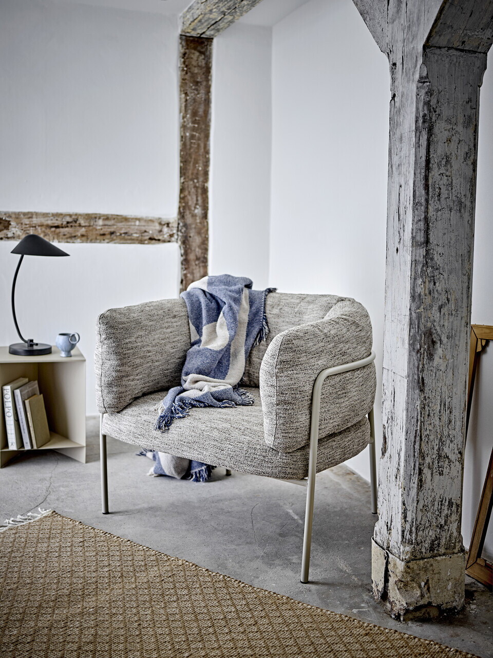 Bloomingville este un brand danez de design interior, fondat in 2000, care aduce o interpretare contemporana si echilibrata a esteticii nordice. De-a lungul timpului, brandul a dezvoltat colectii pentru casa, propunand piese decorative si mobilier realizate din materiale naturale, cu finisaje autentice si detalii atent gandite.Inspirate de stilul de viata scandinav, colectiile Bloomingville aduc simplitate si caldura in orice interior si se integreaza usor in amenajari moderne, oferind un aer placut si armonios.Mentiuni:Compozitie material: 50% bumbac, 33% poliester, 12% viscoza, 5% fibra acrilica (PAN).A nu se curata chimic.Spalare la masina la maximum 40°C.Calcare la temperatura medie.Uscare in uscator la temperatura redusa.