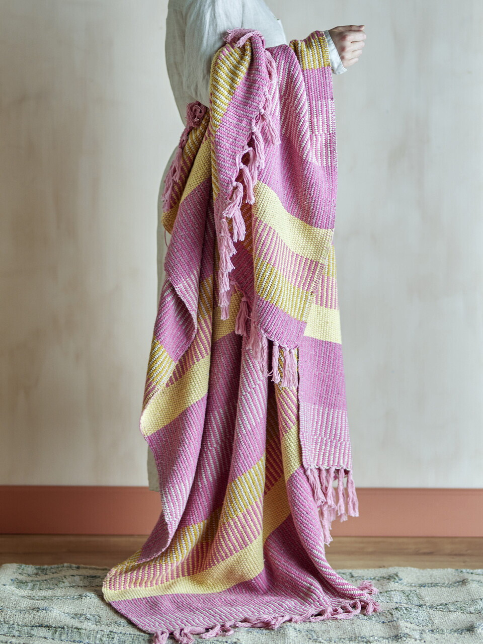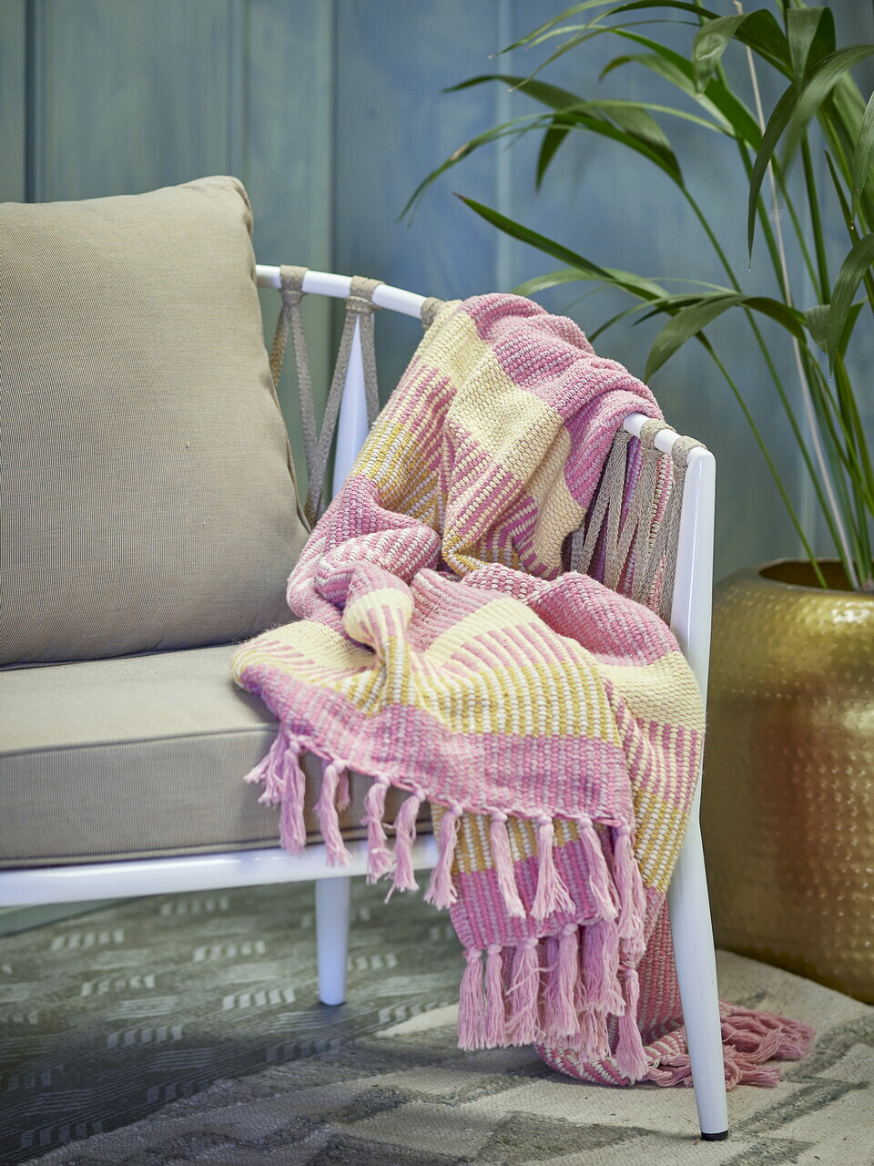 Bloomingville este un brand danez de design interior, fondat in 2000, care aduce o interpretare contemporana si echilibrata a esteticii nordice. De-a lungul timpului, brandul a dezvoltat colectii pentru casa, propunand piese decorative si mobilier realizate din materiale naturale, cu finisaje autentice si detalii atent gandite.Inspirate de stilul de viata scandinav, colectiile Bloomingville aduc simplitate si caldura in orice interior si se integreaza usor in amenajari moderne, oferind un aer placut si armonios.Mentiuni:Compozitie material: 43% bumbac, 22% poliamida, 17% poliester, 12% viscoza, 4% poliamida, 2% lana.Se poate curata chimic.Spalare la masina la maximum 40°C.Calcare la temperatura medie.Uscare in uscator la temperatura redusa.