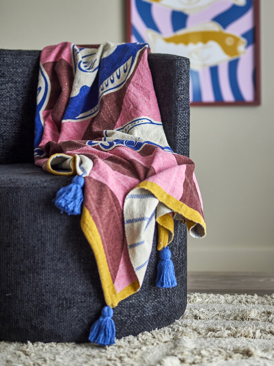 Bloomingville este un brand danez de design interior, fondat in 2000, care aduce o interpretare contemporana si echilibrata a esteticii nordice. De-a lungul timpului, brandul a dezvoltat colectii pentru casa, propunand piese decorative si mobilier realizate din materiale naturale, cu finisaje autentice si detalii atent gandite.Inspirate de stilul de viata scandinav, colectiile Bloomingville aduc simplitate si caldura in orice interior si se integreaza usor in amenajari moderne, oferind un aer placut si armonios.Mentiuni:Compozitie material: 41% bumbac, 36% poliester, 12% poliamida, 6% viscoza, 4% poliamida, 1% lana.A nu se curata chimic.Tesatura tesuta cu model imprimat pe o parte si dungi tesute pe partea din spate.Spalare la masina la maximum 40°C.Calcare la temperatura medie.Uscare in uscator la temperatura redusa.