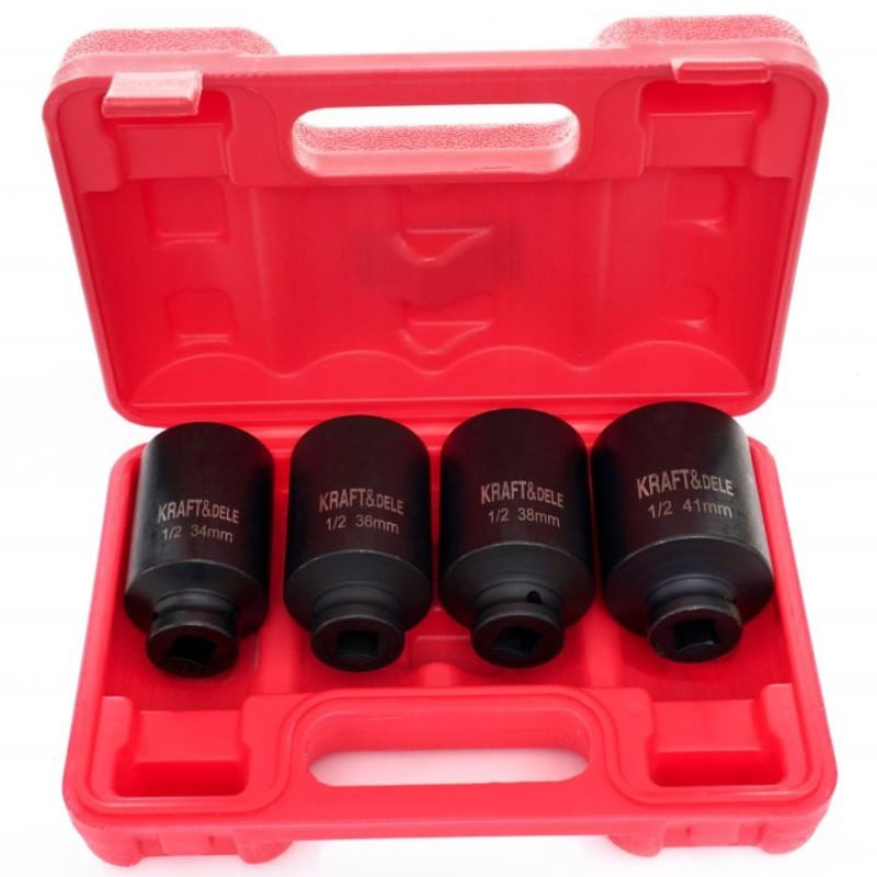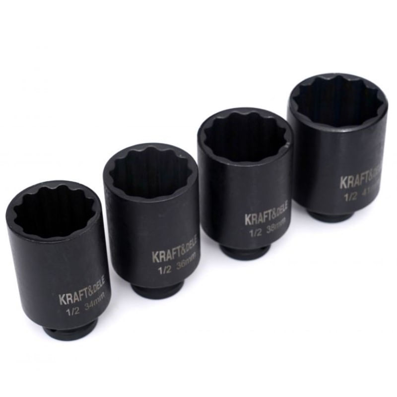 Trusa tubulare, in 12 puncte, KD11754, Kraft&Dele/nDate tehnice:/n/nDiametrul cheii: 1/2/nNumar de prize din set: 4 buc./nMaterial:  otel Cr-Mo crom molibden/nTip priza: 12 puncte/nGreutate: aproximativ 2,4 kg/n/nTIP DE PRIZE:/n34 mm/n36 mm/n38 mm/n41 mm
