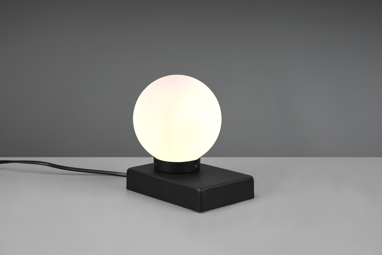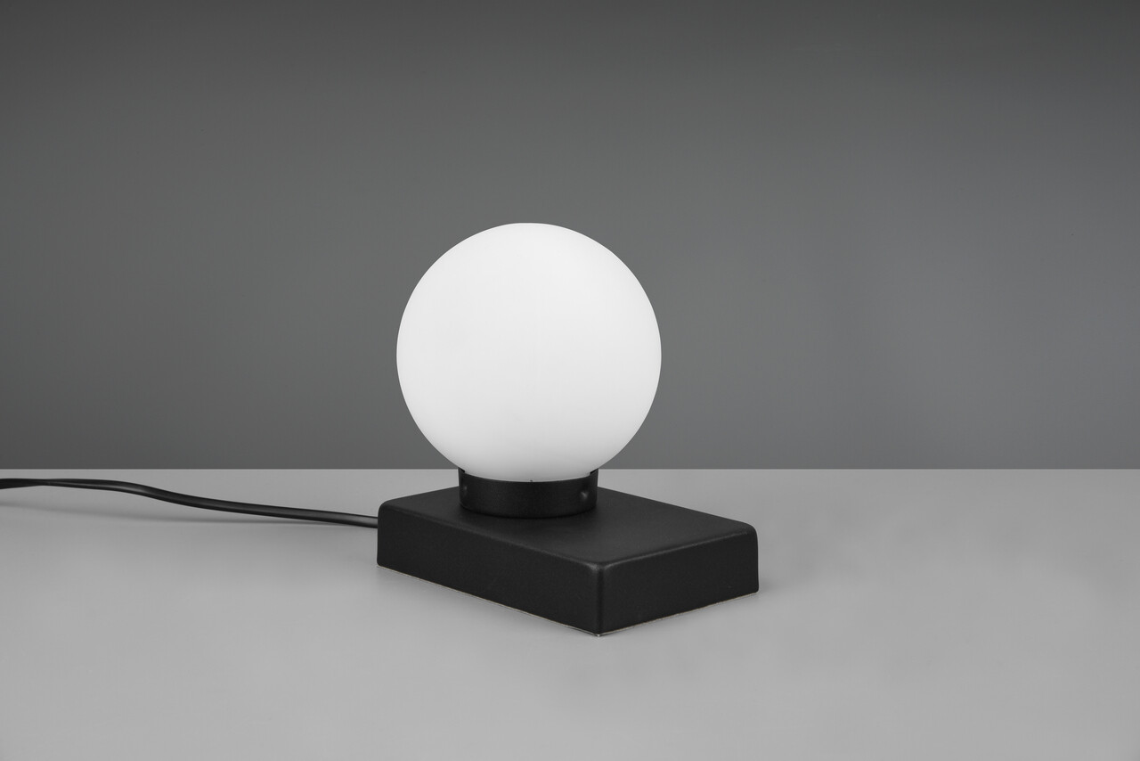 Lampa de masă Davi II de la TRIO, cu dimensiuni de 15x12x15 cm, este un accesoriu modern și versatil, perfect pentru orice încăpere. Echipată cu o funcție tactilă practică, aceasta poate fi amplasată cu ușurință lângă pat sau pe o comodă, oferind o lumină discretă și plăcută. Abajurul din sticlă albă creează un contrast elegant cu structura metalică neagră mată. Se recomandă utilizarea unui bec LED pentru o iluminare eficientă și durabilă, iar designul său asigură o calitate înaltă a luminii, cu generare redusă de căldură. Becul nu este inclus.
