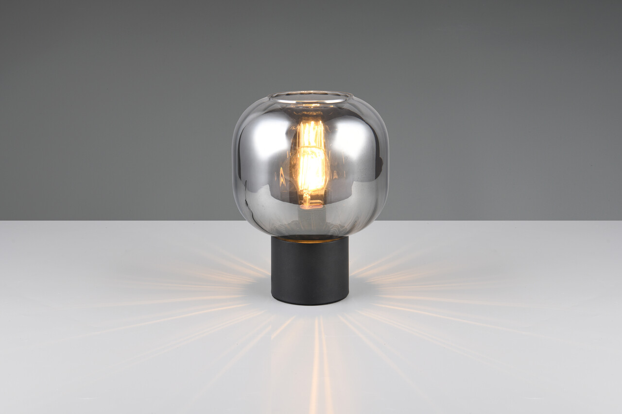 Lampa de masă Diva, cu dimensiuni de 20x26 cm și o putere de 40W, îmbină eleganța negrului mat cu rafinamentul sticlei cromate. Abajurul din sticlă atrăgător creează un joc de lumini cald și confortabil, transformând orice interior într-un spațiu deosebit. Designul său atemporal și combinația de culori conferă un aspect discret, dar sofisticat. Este recomandată utilizarea unui bec LED pentru o iluminare modernă și eficientă, cu o durată lungă de viață și generare redusă de căldură. Ideală pentru a adăuga farmec oricărei încăperi.
