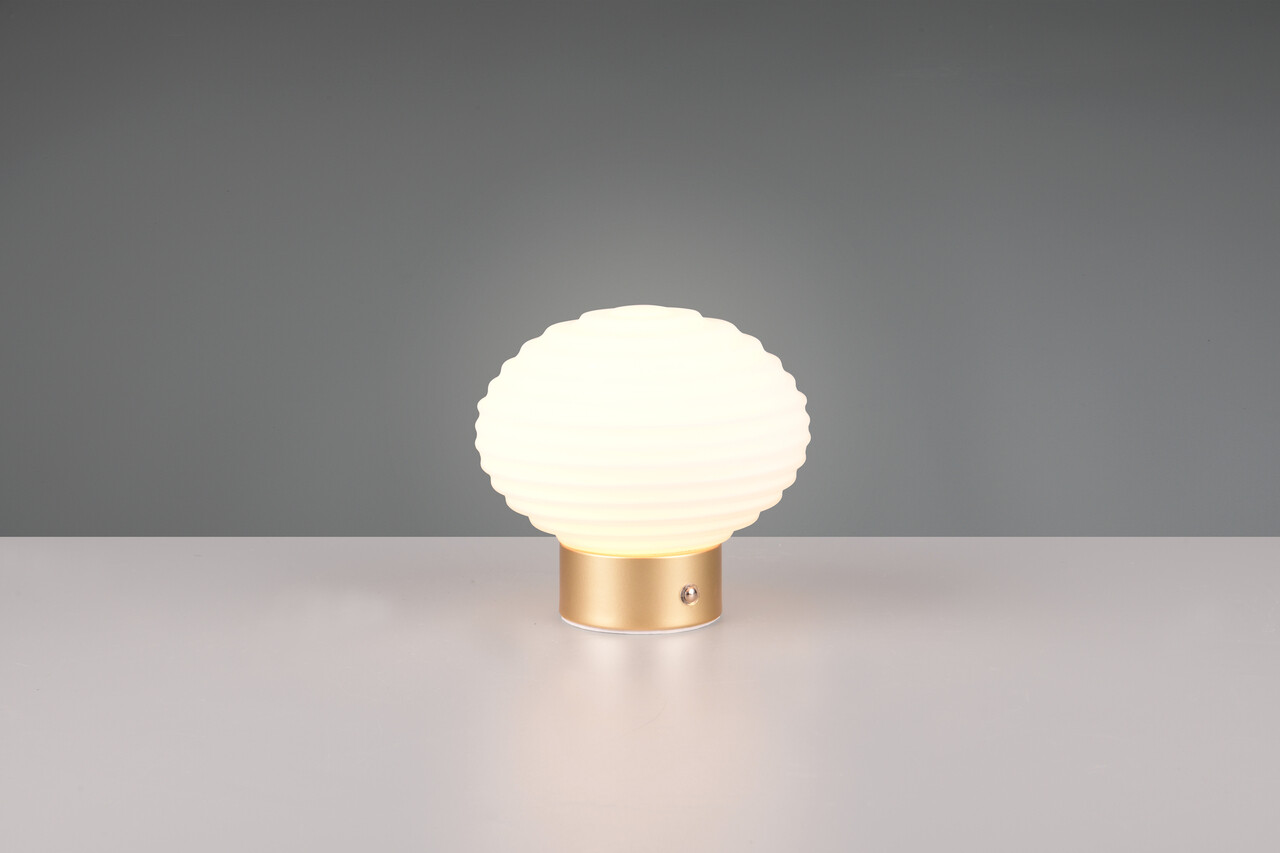 Lampa de masă Earl are un design elegant, cu un finisaj din metal bronz mat și alb, fiind perfectă pentru a adăuga o notă de rafinament oricărui spațiu. Cu dimensiuni reduse de 15.5x14.5 cm și o înălțime de doar 14.5 cm, se integrează ușor pe mese, bufete sau rafturi. Datorită bateriei reîncărcabile integrate, poate fi amplasată oriunde, oferind o atmosferă relaxantă. Lampa dispune de tehnologie LED modernă, având o durată de viață de 25.000 h și un flux luminos de 100 lumeni. Atingerea în 4 moduri permite ajustarea luminii, iar indicele de redare a culorii (CRI) de 80 asigură o iluminare de calitate.